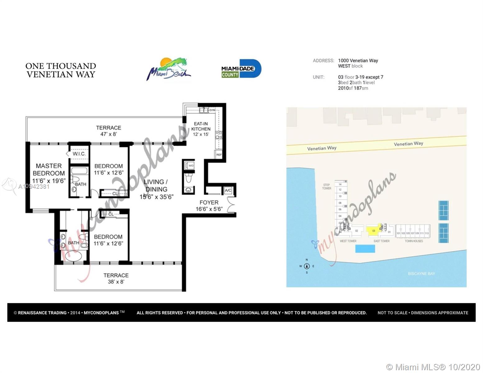 Stylish, updated 3 bedroom, 2.5 bathroom (2,010 SqFt) flow-through unit offers breathtaking views from both north and south facing oversized balconies. All bedrooms, living areas, and kitchen open onto balconies. Marble and bamboo floors. Electric hurricane shutters. 2 assigned, side-by-side, covered parking spaces. Unit shares a semi-private, two-elevator foyer with only one neighboring unit. Generous amenities include gym, party room, BBQ area, 2 pools, visitor parking area, 2 tennis courts, dog park, 24-hour security and more. Location on Venetian Causeway provides most stunning views of Downtown Miami and Intracoastal Waterway. Walking distance to cultural and sports venues in Downtown Miami, as well as to shops and restaurants of Sunset Harbour and Lincoln Road in Miami Beach.