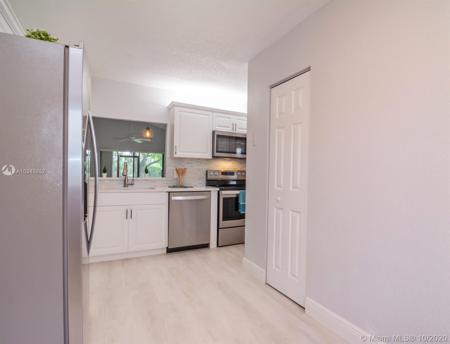 BEAUTIFUL TURN-KEY HOME SWEET HOME! Fully renovated in contemporary style, 3 bed/2 bath villa with split floorplan. BRAND NEW pristine white kitchen cabinets, quartz countertops, stainless-steel Whirlpool appliances and pass-through to dining area. Oversized walk-in closet and spacious second closet in primary bedroom. BRAND NEW bathrooms, BRAND NEW white vanities, BRAND NEW walk-in shower with glass doors in primary bath and tub in second bath. BRAND NEW modern floors and baseboards. Vaulted ceilings in spacious living area and freshly painted in neutral colors. Sliding doors open to peaceful and private screened back patio with view of garden area. AC 2019. Fresh landscaping and assigned parking directly in front of unit. Association cares for roof, exterior, common areas, & basic cable.