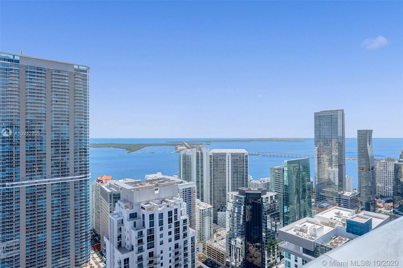 Panoramic east views capture Atlantic Ocean, Biscayne Bay, Magic City Skyline and the Port of Miami from this magnificent Penthouse perched atop the 60th floor. This spectacular Penthouse is the epitome of luxury, chic urban living. Some features include upgraded built-in furniture in living room and master bedroom. Beautiful light fixtures installed throughout. Wall fabric installed by Orlean. Travertine floors, Snaidero kitchens, and 10ft ceilings. No detail spared in this 64-story wonder built by Ugo Colombo’s CMC Group. State of the art fitness center and spa. Other great amenities include recreation rooms, children’s play area, game room, and movie theater. Brickell area cafes, bars and restaurants are just an elevator ride away. Just steps from Brickell City Center.