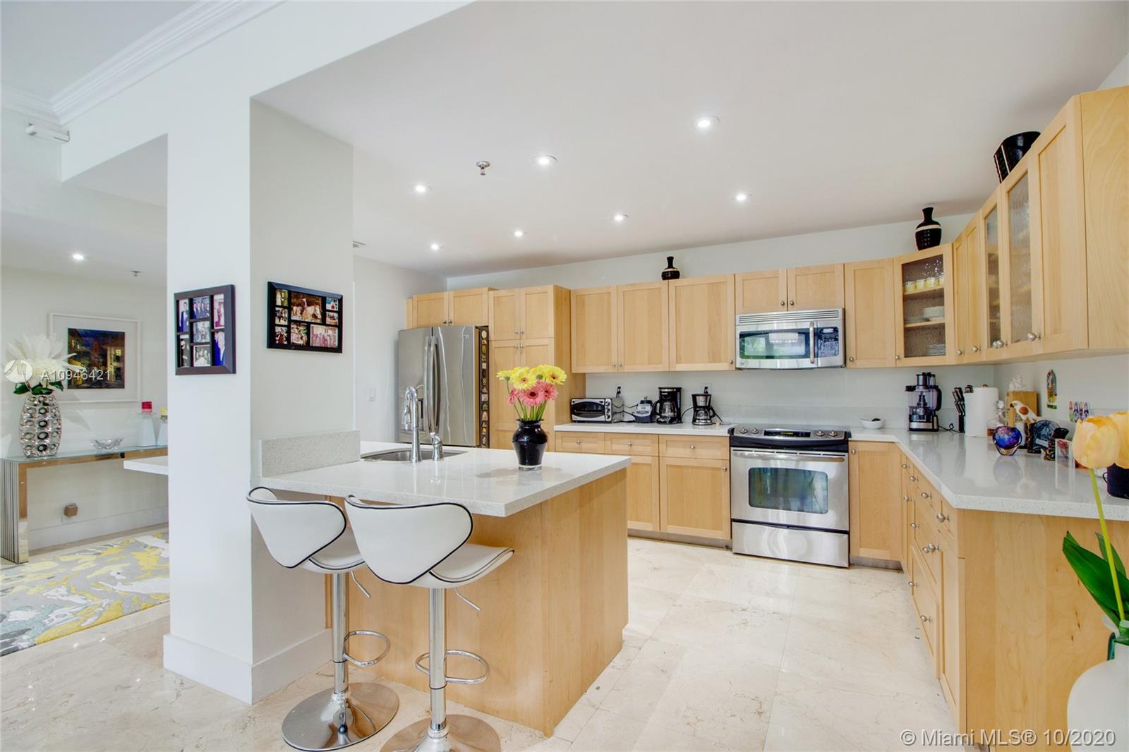 New Listing! Beautiful 2 bedrooms , 2 bath apartment facing South. Steps from the Beach and Ocean Breeze. Totally remodeled including Kitchen, Baths, Bedrooms, Closets, Laundry Room and CGI impact windows ( Estate Collection). Marble flooring throughout the apartment and balcony, custom lighting fixtures, new Fire Sprinkler System and Roller Shades with remote control. 1,532 Sq.Ft. with additional 200 Sq.Ft. open balcony + private utility room. Two covered parking spaces. Amenities include 24HR Security, Pool Steam Room, Gym, BBQ Area, and much more.