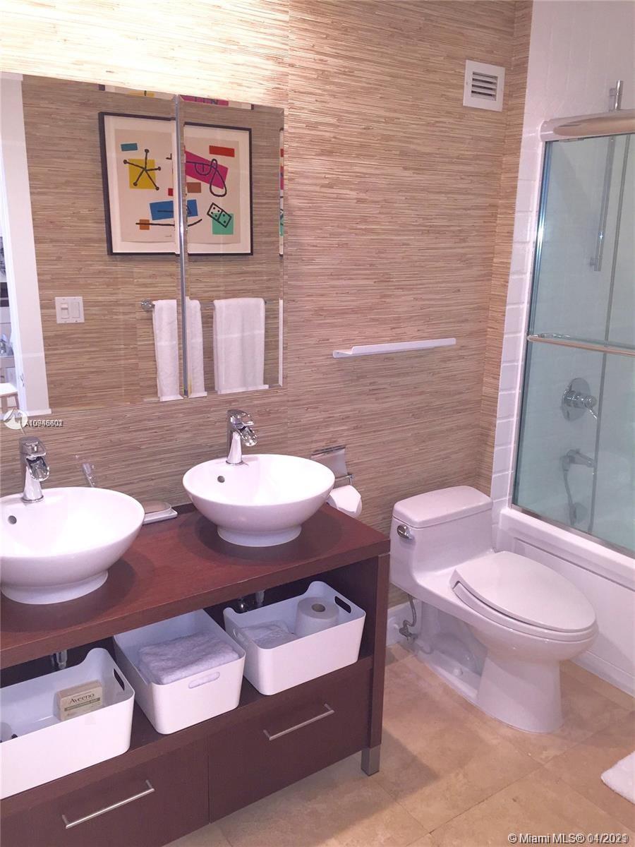 Value! Generous amble space in this completely renovated stunning 760 sqft studio w/12 foot ceilings..yes 12 foot ceilings. 16th floor unique feature - makes a huge difference in the feel of the apartment. Compare to other 16th floor asking $ prices. Large modern kitchen w/GE Profile Stainless Steel appliances, modern bathroom with jacuzzi tub, built out walk-in closet ,travertine and wood floors w/open living space concept. Beautiful west facing views of Biscayne Bay and downtown Miami. Beachfront facilities w/ membership option to One Hotel gym and spa. Monthly maintenance of $928.38 including cable & AC electric. Additional Monthly special assessment $427.84 ($102.58 ends July 2021 & $150.34 ends Feb 2023 and $174.92 ends March 2030). Tenant until 31 July 2021 with 60 day kick out .