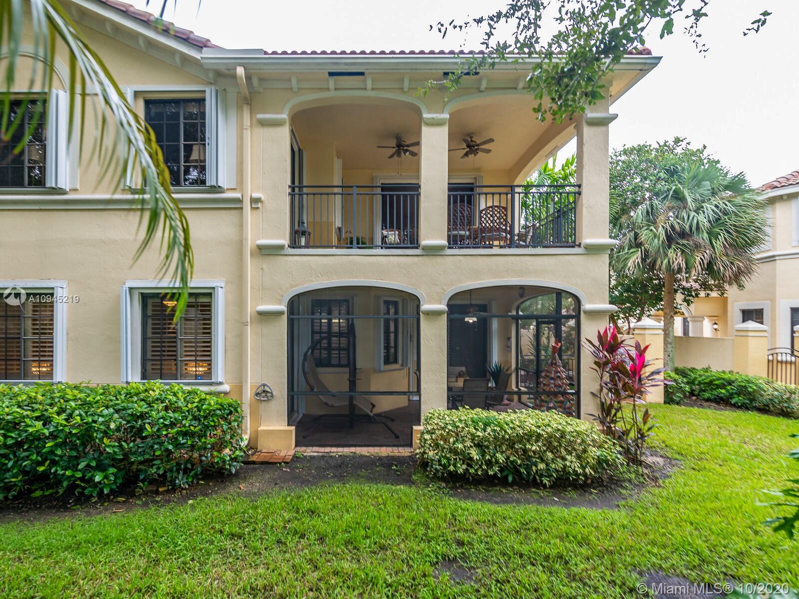 Immaculately maintained, move-in ready Coach Home in the heart of Weston. Steps away from Town Center w/restaurants, drug store, supermarket, specialty shops, and more. Ground floor unit with 1,610 SF under AC, 2 beds + den/office, 2 baths, 2-car garage. Upgraded kitchen w/Kitchen Aid SS appliances, Quartzite countertops, custom cabinetry, and breakfast bar. Beautiful solid wood flooring in bedrooms and tile floor in living areas. LED high hat lighting, Plantation style shutters, painted in neutral colors, His & Her walk-in closets, ADT alarm system, newer AC, accordion storm shutters, fully-screened patio, brick-paved private courtyard, security gate, conveniently located minutes from I-75, 595 Expy, and 869 Sawgrass Expy.
