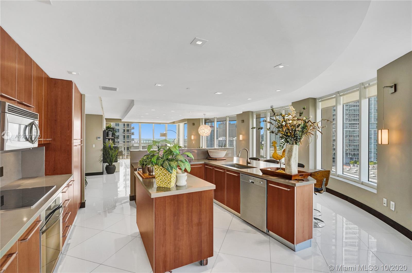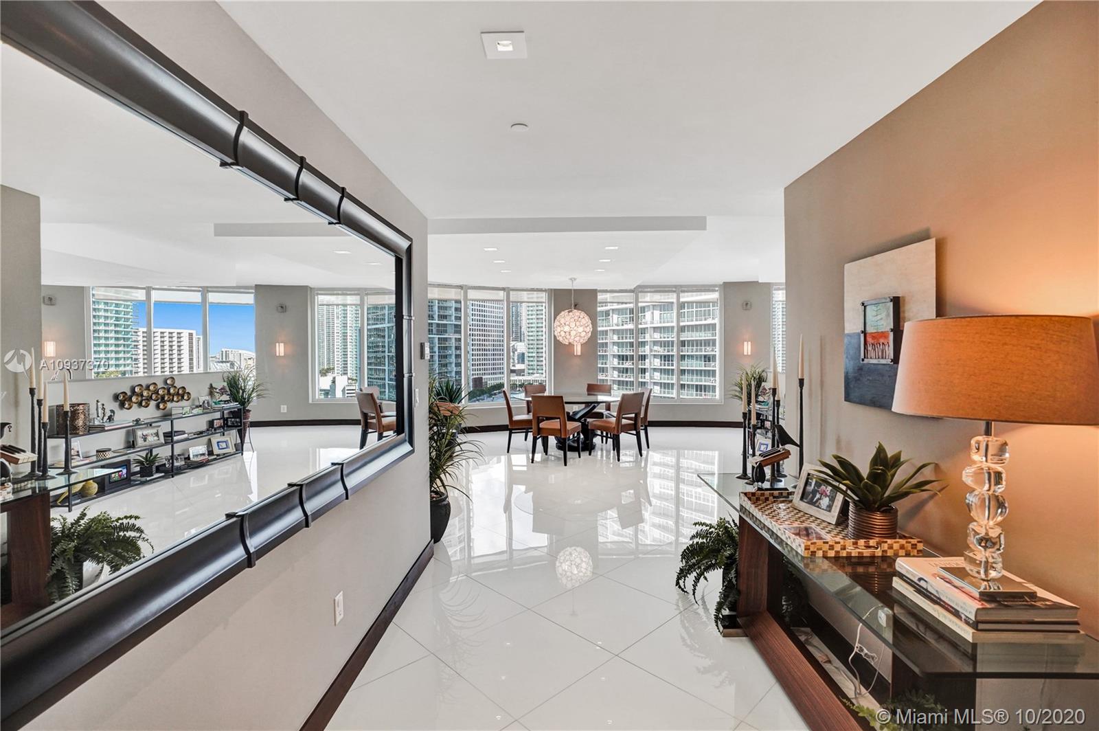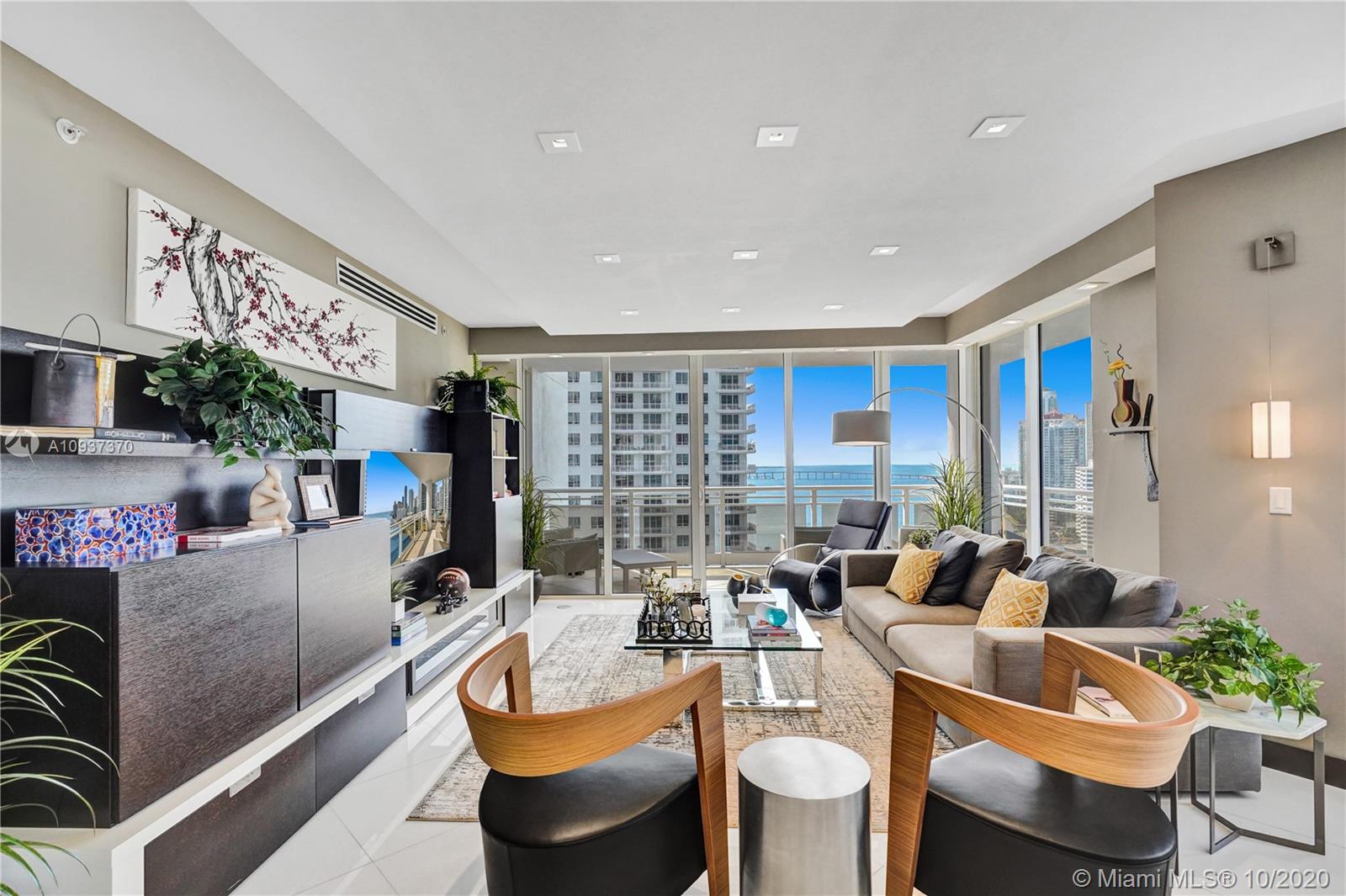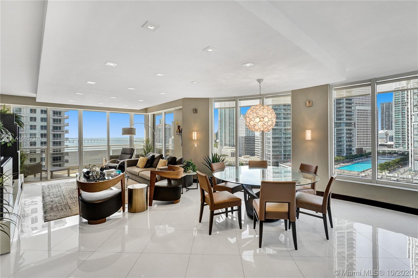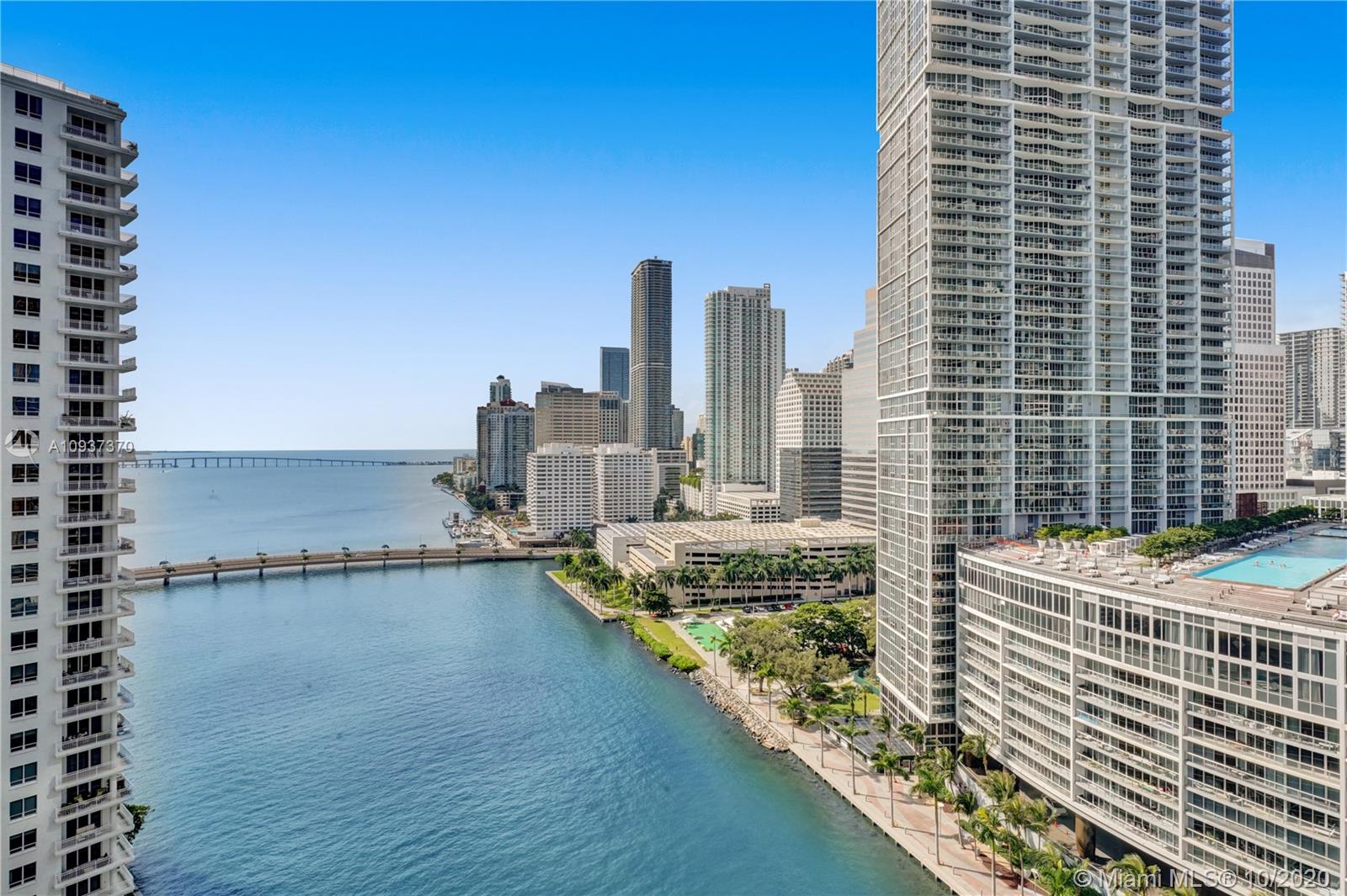 Stunning, sun-drenched corner 04-line residence at Carbonell offers unique 180-degree panoramic sweeping views of the Miami River, Biscayne Bay and vibrant Brickell Skyline.Upon arriving you are immediately drawn to an expansive rounded great room, giving center stage to mesmerizing views through oversized windows, high ceilings and multiple terraces that add to the grandeur of this fantastic home.Spanning approximately 2,600 square feet, this professionally designed property has 25X25 Porcelain flooring throughout, multi-zone AC, split bedroom and accented with exquisite rich hardwood doors and frames.Building offers an array of amenities such as guard gate, front desk concierge, secured elevator, Bi-level health club, heated pool.Property sold together with 2 covered parking and storage.