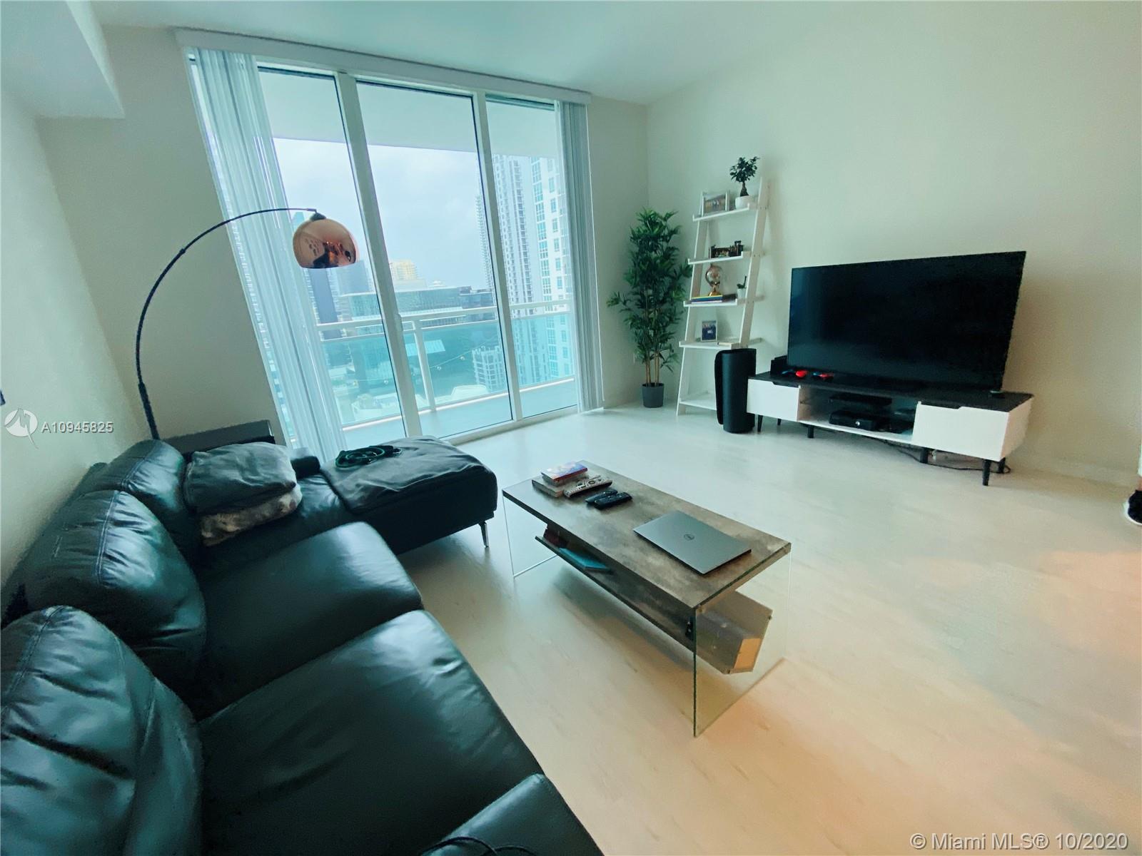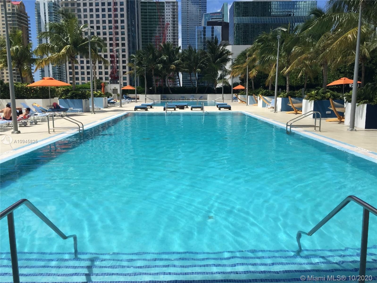 Beautiful unit overlooking the amazing infinity pools. Unit has laminated wood floors throughout Residence features modern high ceilings, stainless steel appliances, imported Italian cabinetry Amenities: 24 hr security and concierge, 24-hour valet parking, State of the art Fitness Center in each tower, 2 Infinity-edge heated pools, Steam room, Theater room, Business center, party room, pool table & lounge. Walk to Mary Brickell Village and Brickell City Center mall. Minutes away from American Airlines Arena & Performing Arts. HOA includes Water, basic cable & internet. ADDITIONAL PARKING SPACE SOLD SEPARATELY AT $30K