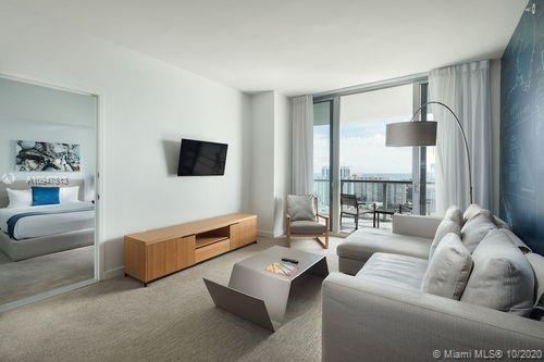 Spectacular furnished turn key unit w/ocean and intracoastal views from this 2 bed & 2 baths from the 22nd floor. It features 2 separate entrances to increase the income potential. Side A is a 1 bed 1 bath with kitchen, dining/living room, large terrace & washer/dryer. Side B is a studio with its bathroom & terrace. Both can be rented with no rental restrictions 365 days.New condo hotel unit at prestigious resort, designed by Pininfarina and developed by Related Group, with access to the BEACH CLUB Beach (transportation provided by building). Take advantage of full membership at beach club, rooftop pool, ultimate equipped gym, valet parking & many more amenities! Unit is ready to be moved into, in prestige condition, luxury kitchen, built-in closets, window treatments.