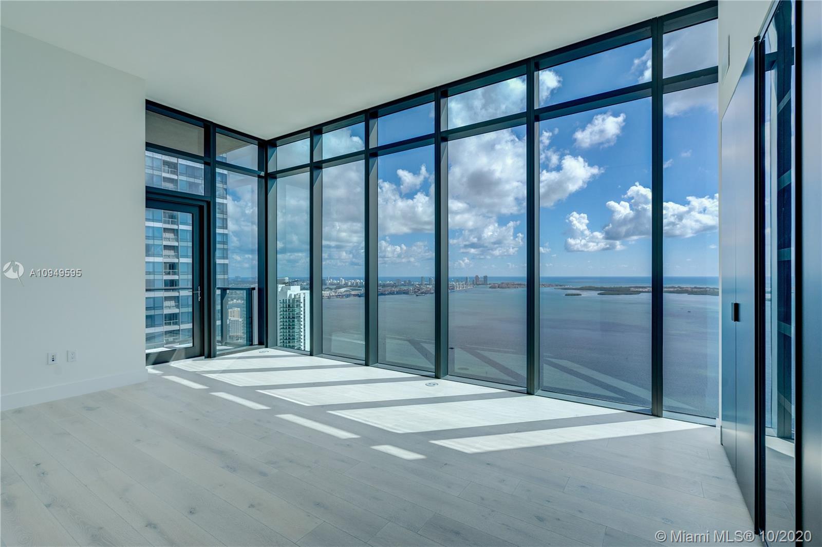 Incredible building from famous Carlos Ott!! Amazing Lower Penthouse unit never lived with endless and unobstructed views of Biscayne Bay and the ocean. This Unit has 3 Bedrooms + den, 3 Bathrooms and a Half Bath; 12 ft high ceilings with floor to ceiling glass windows. Top of the line appliances (Wolf ), Sub-Zero Refrigerator, wine cooler and built-in coffee & espresso machine. Unit comes with marble floor and wood laminate in the rooms. Summer Kitchen with Barbecue Grill in a Huge Terrace with unbelievable views. Building is considered a five star Building with state of the art amenities including spa, fitness center, infinity edge pools, concierge service and a lot of other great features. You must see it!!
