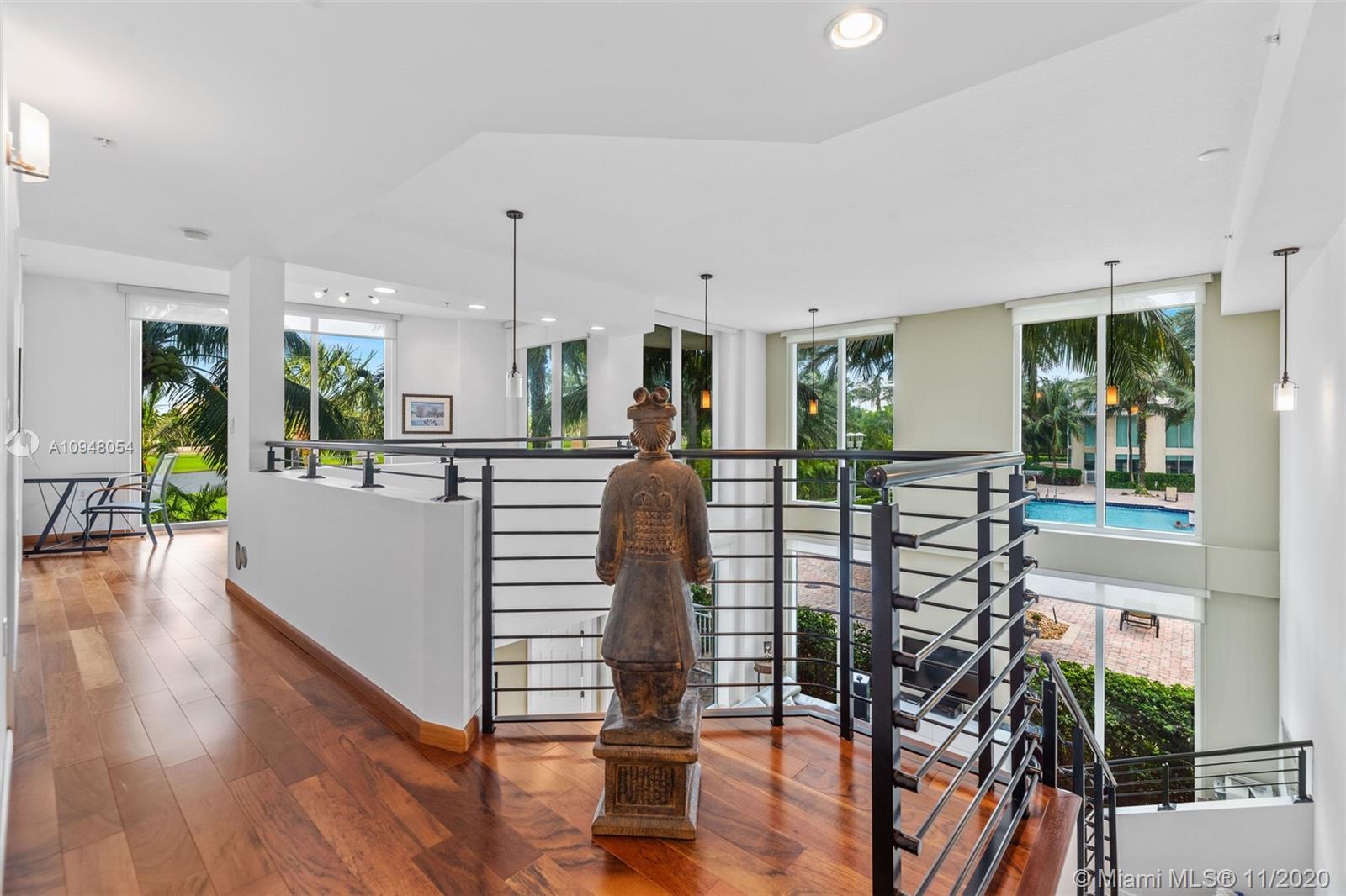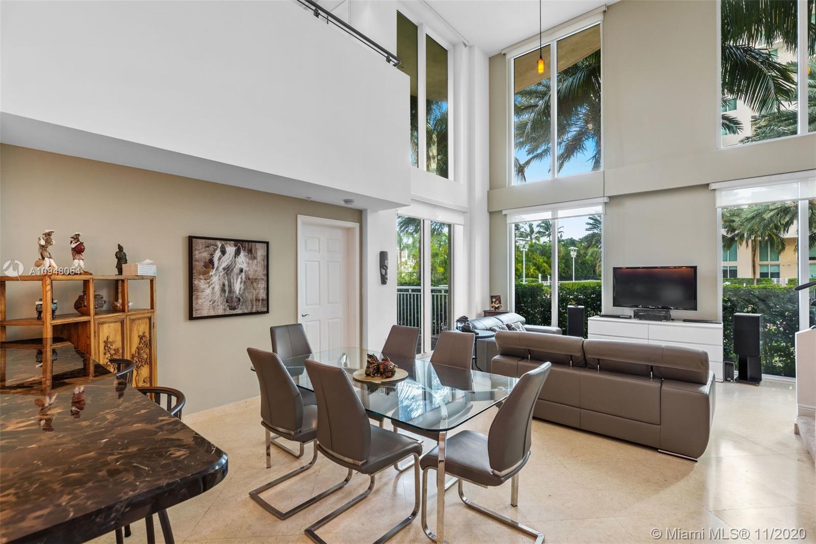 Exceptional, rarely available 2-story corner townhouse with pool, lake, & golf course views. This fully updated 2/2.5 condo has large private outdoor terrace leading to pool. Dramatic 20 ft. vaulted ceilings throughout spacious living area, & floor to ceiling impact windows maximize your views & natural light. Fully equipped modern kitchen is perfect for entertaining with granite countertops, SS appliances and wood cabinetry. Marble and Brazilian hard wood floors. Convenient 2nd floor laundry room & 2 assigned parking spaces plus valet. Amenities include 24 hr. sec., business center, theater, tennis, spa & fitness center, jogging path, heated pool, billiard & party room. Walk to the beach, coffee and shops. Maint. INCLUDES cable/internet, H2O/sewer/trash/appliance contract. Broker remarks.