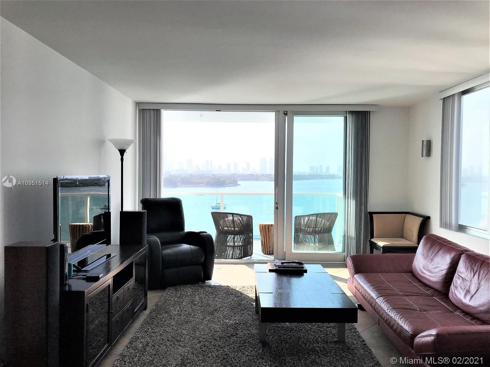 Fully Furnished and Renovated 2 Bedroom / 2 Bathroom unit in the Full Service Mirador 1000 with Direct Bay Views and an Assigned Covered Self Parking Space. Maintenance includes; Cable, Internet, Fitness Center and Parking. Convenience Store, Salon, Spa, and on site Fitness Center are located on Lobby Level.