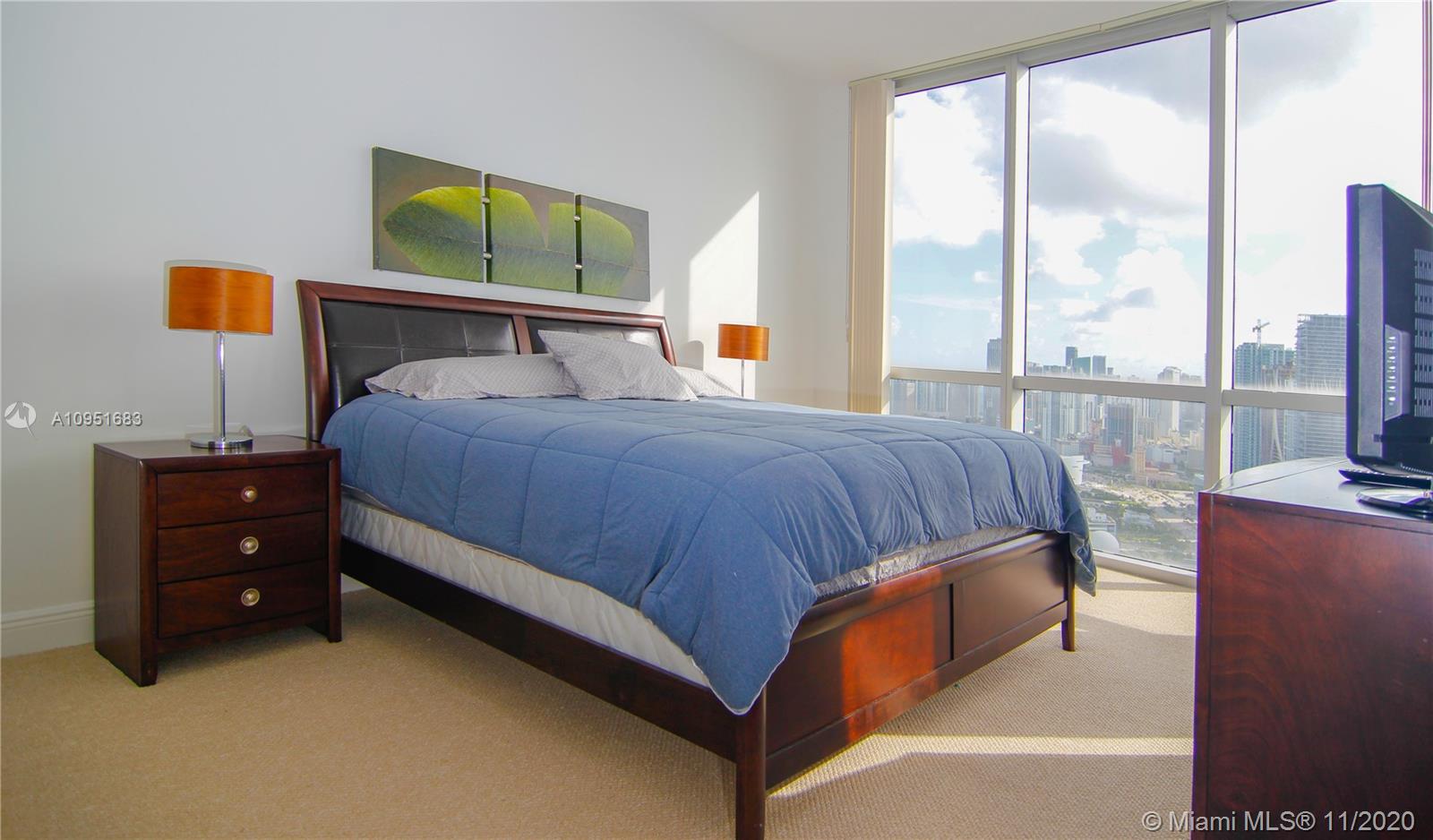 Do you wonder what it feels like to live ABOVE a penthouse? Well, this is your opportunity to experience this luxurious lifestyle at the beautiful Opera Tower. The apartment comes beautifully furnished with stainless steel appliances, granite countertops. Split floor plan with a large master suite. Sweepings view of the bay, Key Biscayne, downtown, and the city. Experience breathtaking sunsets, relaxing views of the sailboats and cruise ships. Take a walk to the Arsht center, shops, and nearby restaurants. Rather stay in? The heated pool and Sauna at the Spa are conveniently located within the building for your enjoyment. Your family will love the clubhouse, the billiard room, social room, and the fitness center. The amenities also include 24hr security, concierge services etc.