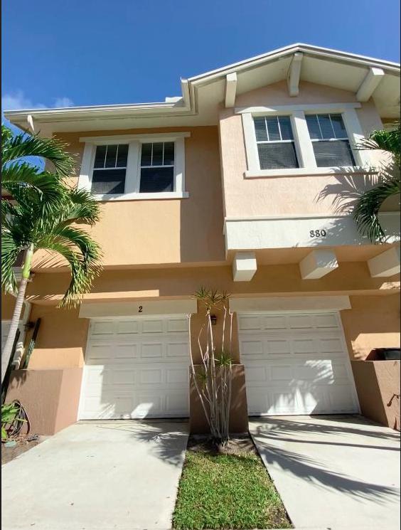 Awesome 3 bed 2.5 bath, 2-story, corner townhouse in great gated community. All 3 massive bedrooms are upstairs with walk in closets & 2 full baths. Ensuite master bath has double vanity, glass shower & water closet. Downstairs has enormous kitchen with solid wood cabinets, double oven & full pantry + large dining & living rooms, huge laundry room with full size W/D, half bath, tons of windows for lots of light, tile throughout & 2 car garage. CitySide features 24 hr guarded gate, the largest pool in town, new 24 hr gym, clubroom, on-site mgmt, jogging trail around lake & more. Family friendly. Large pets welcome. HOA includes H2O, trash/recycling, cable, wifi, insurance & maintenance. Steps to PB Outlets, Whole Foods & Target. 2 Minutes to I95. 3 miles to Downtown. 10 mins to the beach