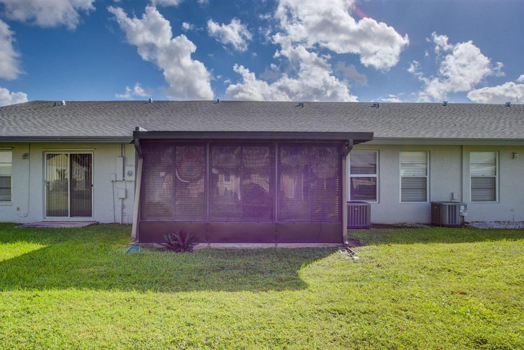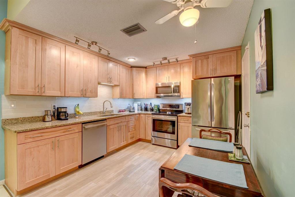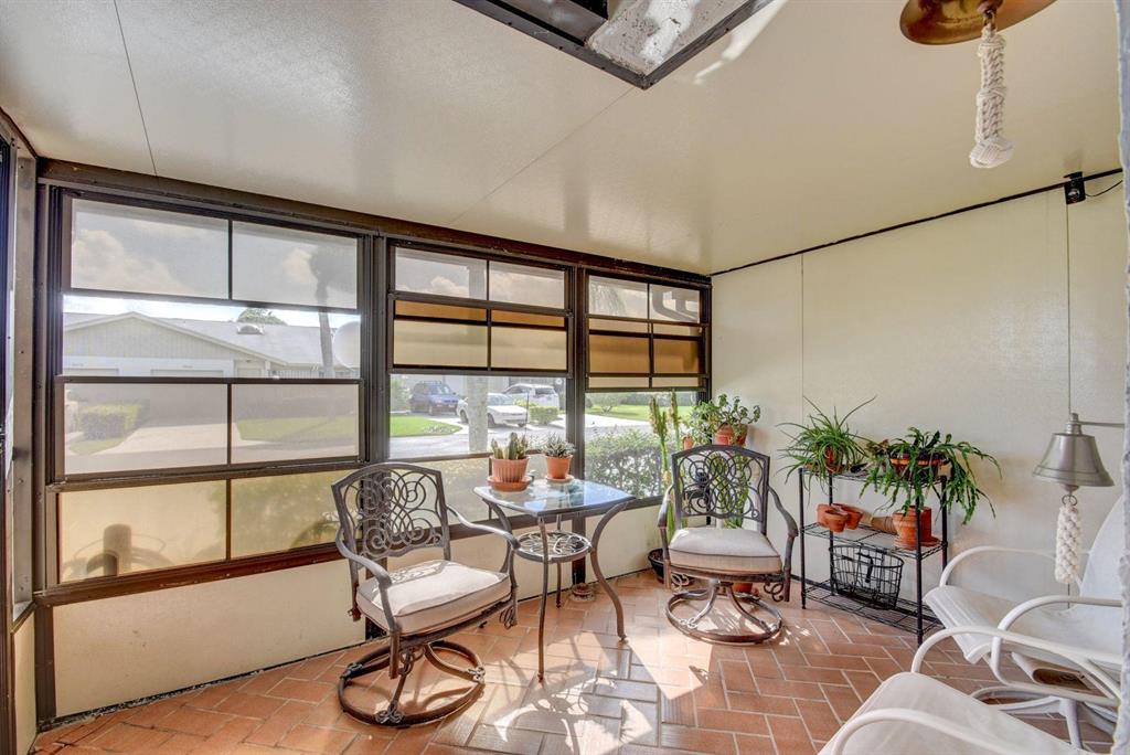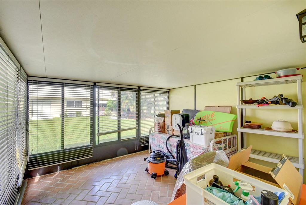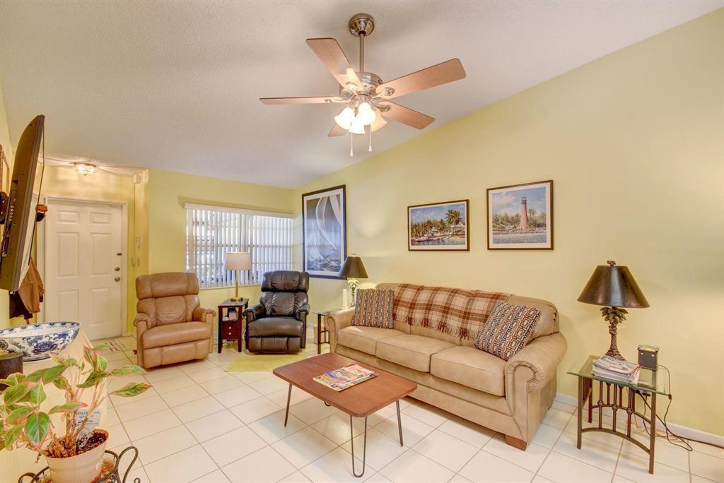 New roof 8/2017, 2019 Wood K Cabs w/auto close drs., & pantry drawer,! Granite counter tops. Bosch D/washer, 3mos. new. SS k appliances, A/C complete 10/19; skylight in LR, 4 fans.Tiled throughout, (diagonal tile in BR's.) Tankless H/water htr.) High rise toilet in master bth. Back patio tiled & has wall unit A/C. Clam shutters/awnings. Front patio w/tile floor, screened & w/sliding vinyl windows.Mins. to PBIA Air., P.O. Grocery, I-95 & Restaurants. 20 minutes to beaches. Golfpar 3&4 exec. course, no fees to play.