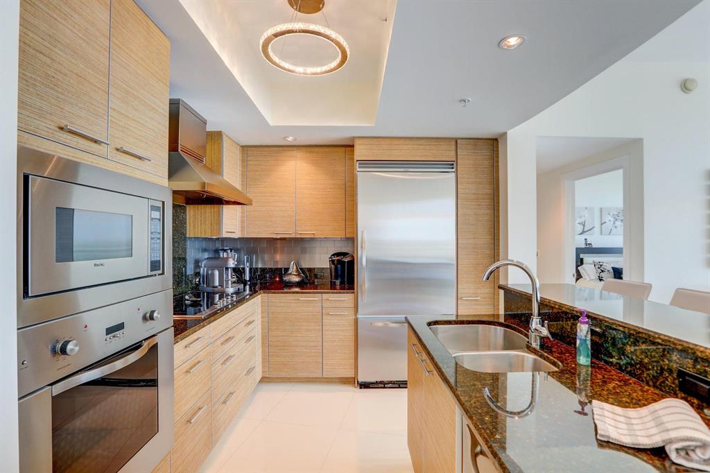Luxurious, fully furnished sky residence on the 17th floor with 2 deeded garage parking spaces! Impeccably maintained and ready for you to host happy hour while the sun sets over the Intercoastal. High end European kitchen with Viking appliances, Poggenpohl cabinetry, granite counter tops and a full sized wine cooler. Amazing views of the Intercoastal and ocean from your 48' covered balcony. The entire unit boasts polished travertine floors making it light and bright. Motorized blinds in all rooms add a level of luxury to this condo. The amenities in the Plaza at Oceanside are second to none - pool, hot tub, outdoor summer kitchens, tennis, gym, media room, wine vault and golf simulator. One bike is included so get ready to explore the area when you move in!! This condo is perfection.