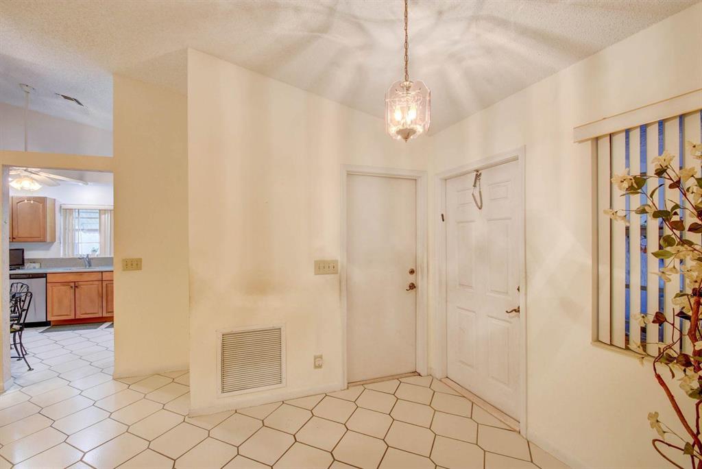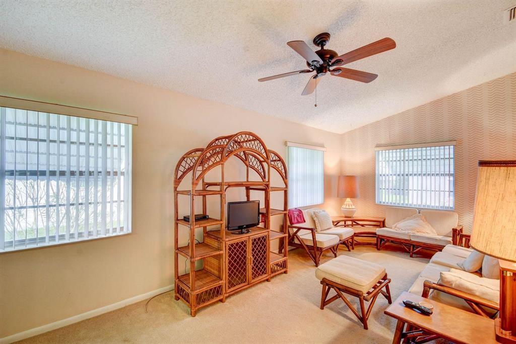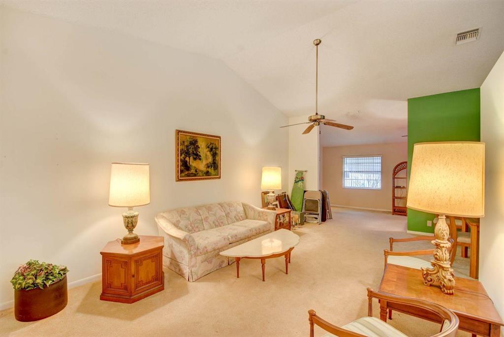 Resort style adult community in central WPB, gated w/24/7 guards, 18 hole executive golf course/tennis/clubhouse, heated pool, bocce, pickle ball, gyms, & more. A/C compressor 9 yrs., air handler 1/6/21, roof 2004; w/heater install 2017, disposal 3 yrs.Close to all one would want. Airport approx.10-15 minutes away! Features newer wood k/cabinets, 7 fans, back enclosed porch w/a/c vent, tiled foyer to kitchen. Vaulted ceilings in living room.Price reflects the need for some updating.