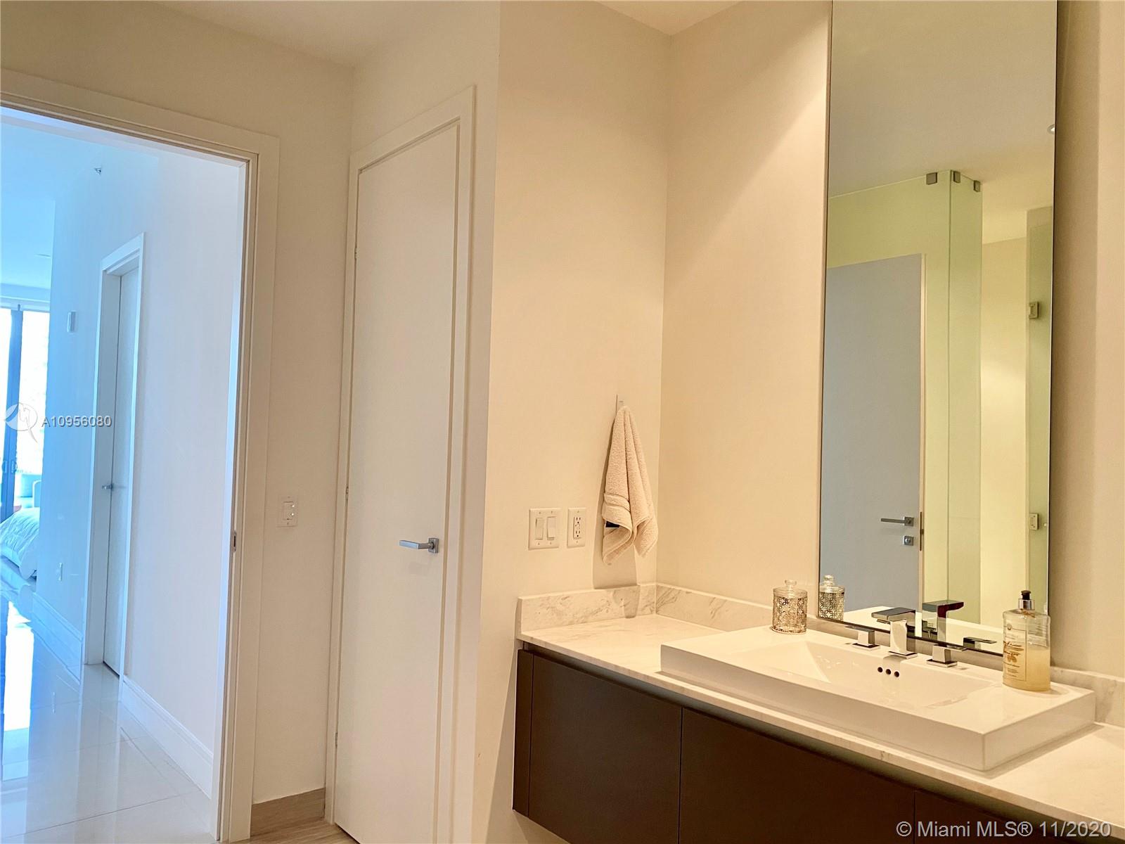 This spectacular, brand new, 4BD/4.5BA unit is one of the best deals at the Echo Aventura. Highlights of this flow-thru residence are private elevator & foyer you'll find a spacious living area with a gorgeous view, high ceilings, bright & spacious layout, custom closets, electric shades & blackouts, smart home technology w/in-ceiling audio, oversized balcony w/summer kitchen & BBQ, gourmet kitchen w/Subzero appliances & Wolf GAS range. Master suite include a midnight kitchen, oversized master bath w/soaking tub, & large walk in closet. Additional service suite w/maid’s quarters, full laundry room & full bath can be 4th bedroom. 5-star amenities include Bayfront infinity-edge, dog walking service, 4,000 SF fitness center w/yoga room, pool & café/restaurant. You must see!!