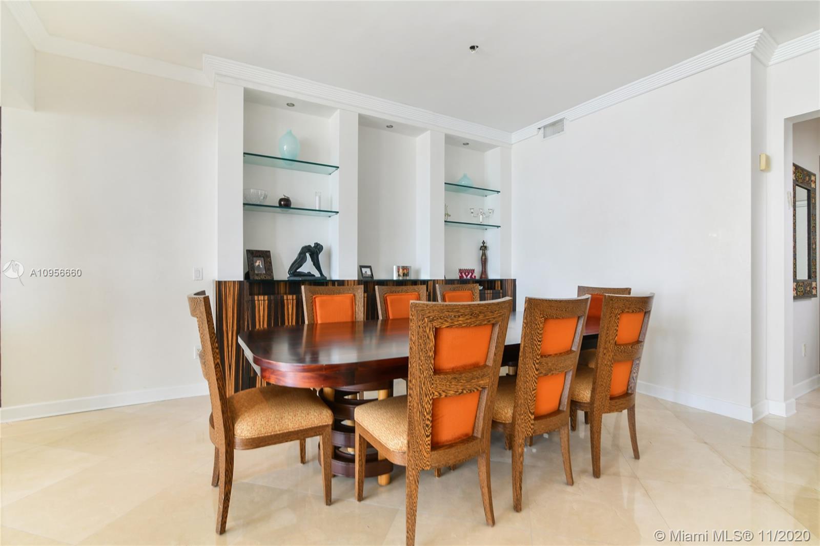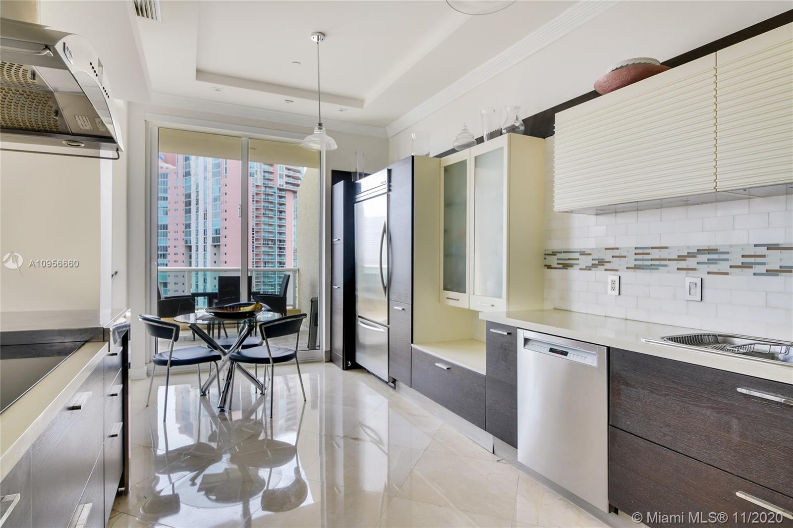 Penthouse at "Aventura Marina" located in the heart of Aventura. Amazing water views of the open bay, marina and ocean. 10 foot ceiling heights across the whole living space. Just steps from Aventura Mall, Turnberry Golf course and 4 min ride to Sunny Isles beach. The Penthouse feels like a house in the sky with extra large balconies for magnificent view of the bay over looking Sunny Isles Beach, the balcony is large enough for entertainment and dinner parties. Features include crema marfil marble and wood floors throughout the living space, and every bedroom has its own shower. 2 of the best assigned parking spaces in building and a large indoor storage unit. Building amenities include full gym, steam room, locker room, yoga space, two pools, meeting rooms, party room, and security.,