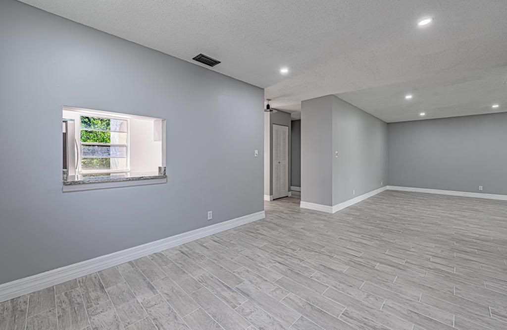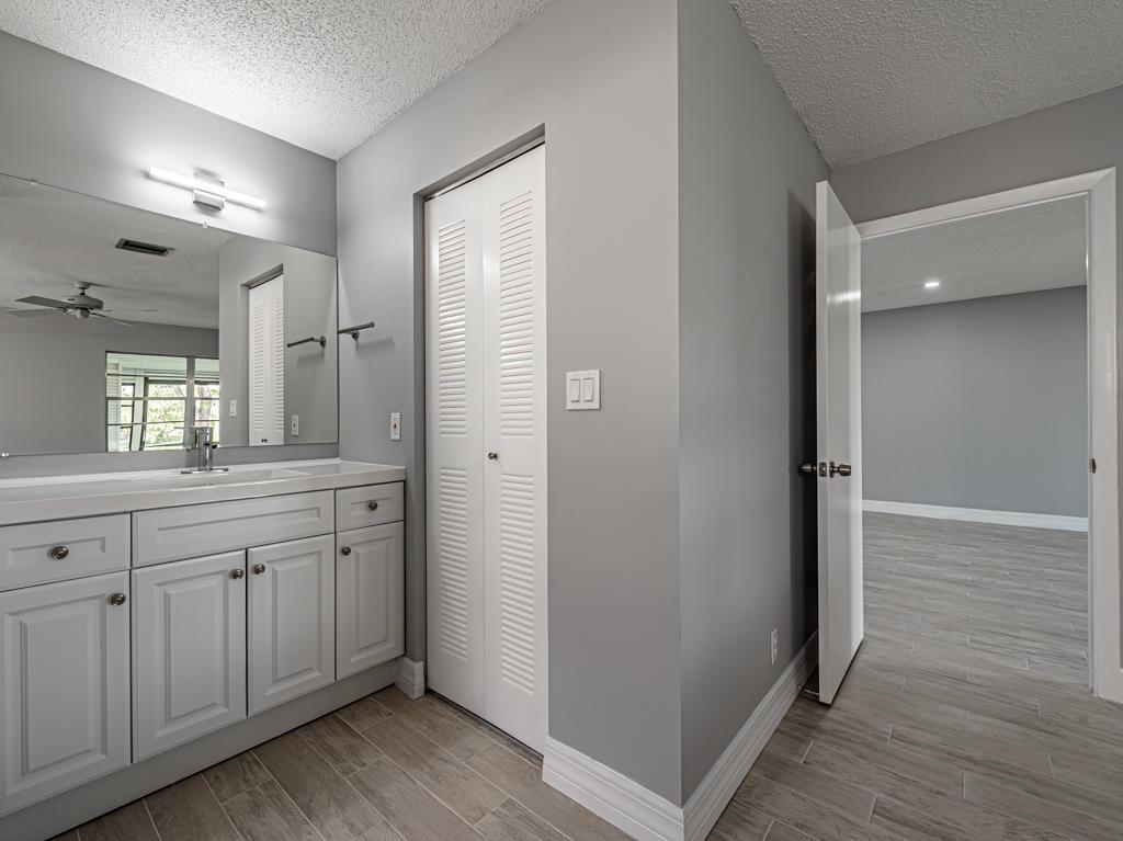JUST COMPLETELY RENOVATED. Corner Villa the largest floor plan in Golden Lakes w/ all new tile flrs, new top of the line SS appliances, custom kitchen cabinets & granite counter, two walk-in closets in master BR, remodeled walk-in shower in guest bath, new 5'' wood baseboards. New LED recessed lights in Kit, LR & DR. New W/H & newer A/C. Largest patio in GL 21'x10' w/ sliding doors overlooking waterway. Phase B section allows one dog up to 30 lbs Monthly maintenance includes Comcast Xfinity Cable, Internet, water/sewer, bldg insur, common area, 24/7 guard gated, on site management, courtesy bus 2 days a week to grocery, malls, shops etc. Convenient location to shopping centers, FL Turnpike and a short drive to downtown WPB. Come Discover Golden Lakes