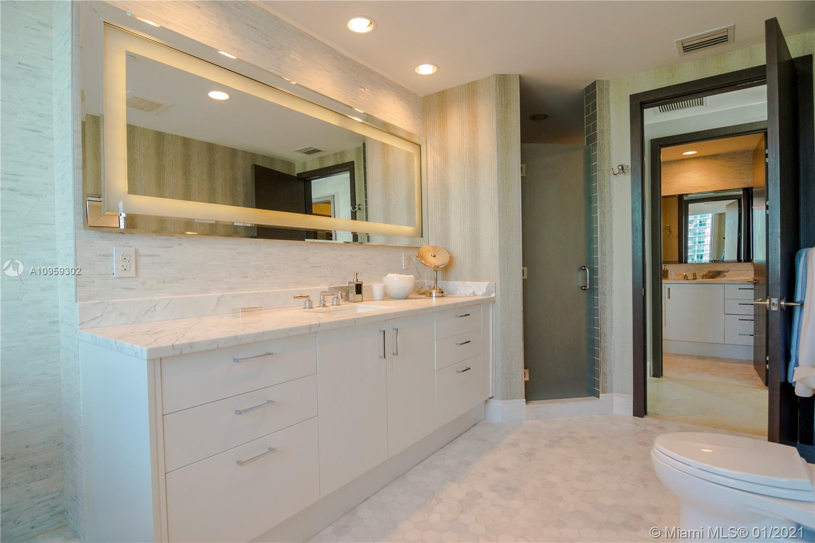 Fully renovated residence with stunning intracoastal views. A private elevator landing opens to a spacious 2,059 sqft living space with elegant travertine flooring throughout. Presenting 2 bedrooms, 3 full baths and 1 half bath, this corner unit offers a chef-inspired kitchen, granite counter tops and back splash, Sub Zero and Miele appliances. The master bedroom features beautiful customized closets, his & her baths, dual sinks and spa tub. Floor to ceiling windows surround an oversized wrap around private terrace perfect for relaxing or entertaining. Living Room and Master feature electric blinds. The full service Bath Club offers the ultimate in luxury living with two clay tennis courts, pool, beach access, hot tub, gym, spa and restaurant service.