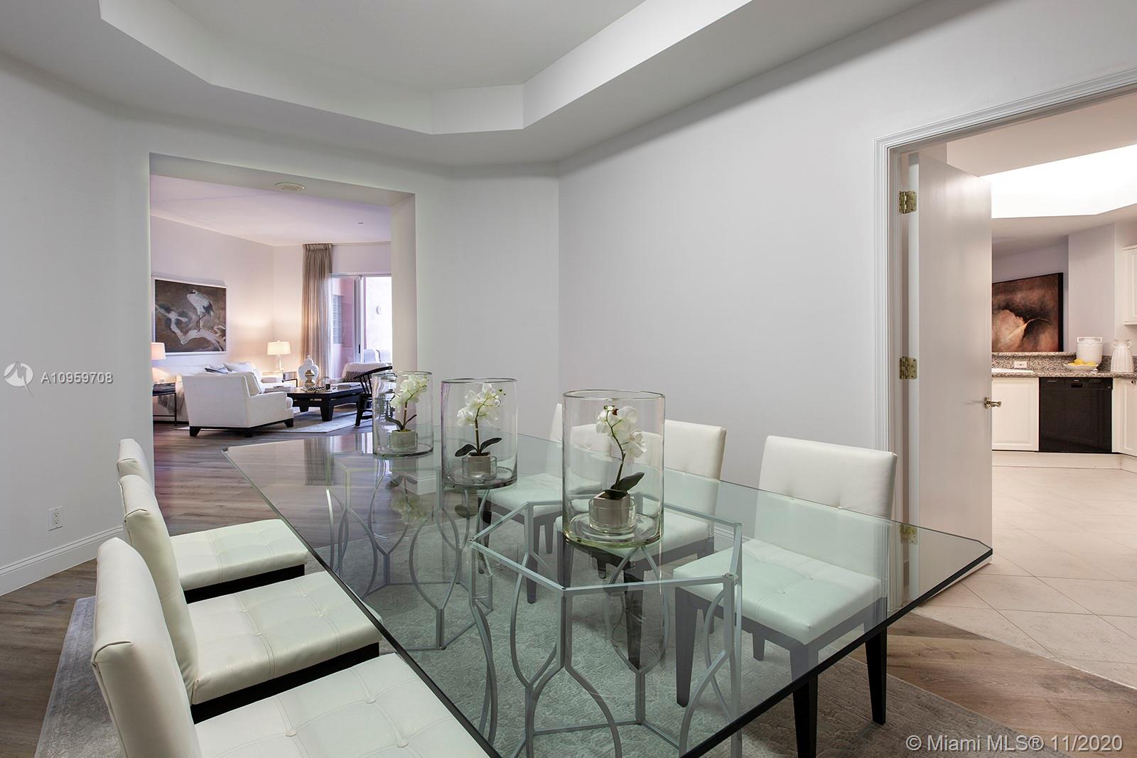Welcome to this 2 beds 2 baths residence in Tower I of the illustrious Gables Club, boasting an incredible open floor plan, expansive interior space, high ceilings, clean architectural lines, floor to ceiling windows, neutral colors and an oversized balcony overlooking the lush grounds, this home is the perfect South Florida retreat. Features include an open kitchen with custom cabinetry & granite countertops, a kitchen nook, a formal dining room, updated bathrooms & porcelain flooring. The Gables Club is a gorgeous, resort-style condominium on the Coral Gables Waterway offering 5-star amenities, residents benefit from private elevators for each unit, guard gated security, lighted tennis courts, spa services, 2 pools, fitness center, club house, restaurant, concierge, & 24/7 valet service.