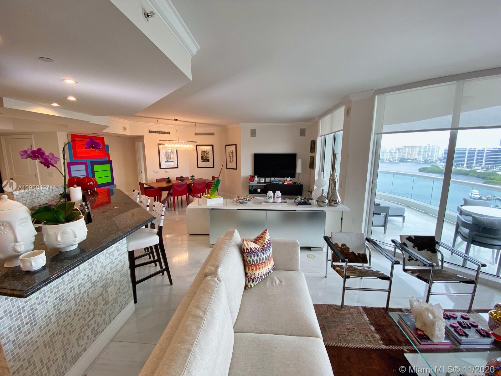 This is the perfect place to enjoy inmediately! Spectacular flow through 3 bed/2.5 baths 2180 SQFT turn key residence - Furniture included! Amazing intracoastal & ocean views. Top of the line kitchen with Gaggenau and Miele appliances. Enjoy the best lifestyle at Williams Island! Tennis courts, Gym, Spa, Marina, Restaurants, kids playground & more! *Wall Art, Paintings, Pictures,Sculptures & accessories are NOT included.