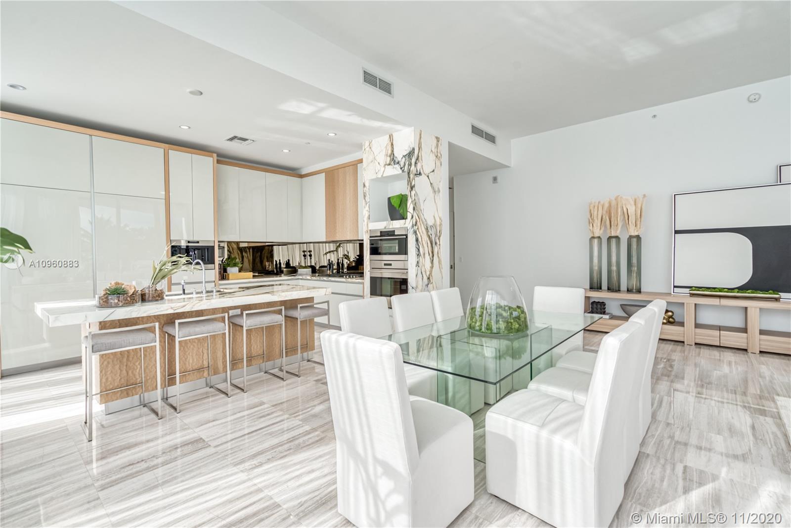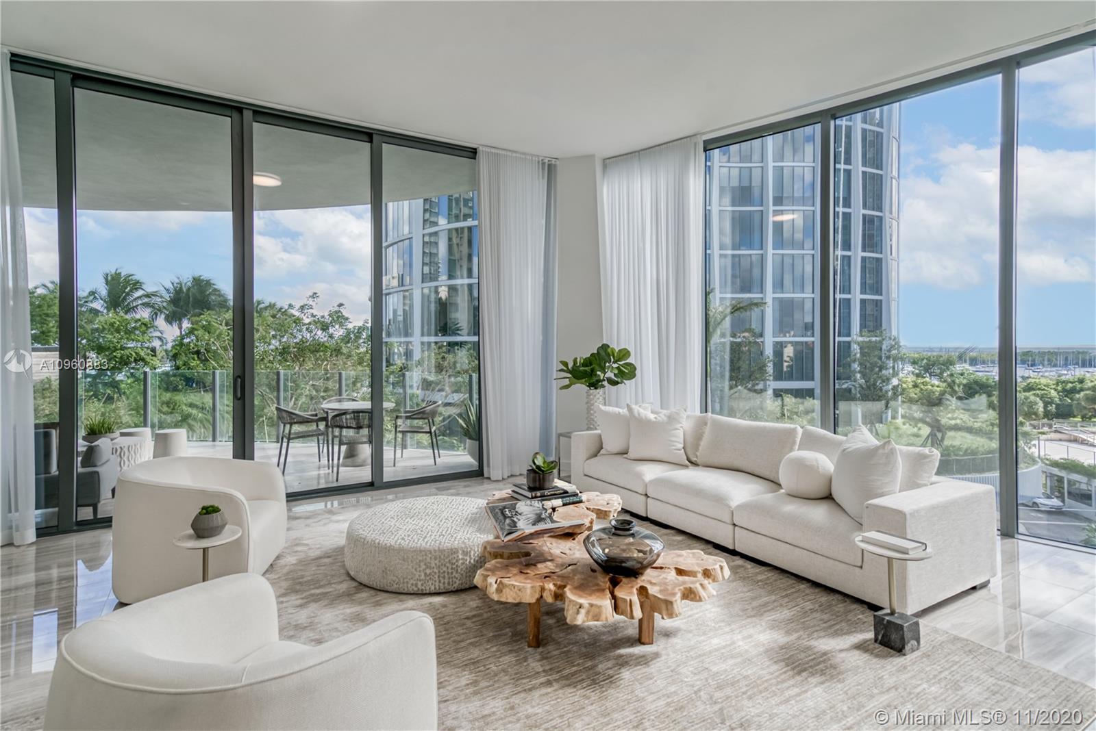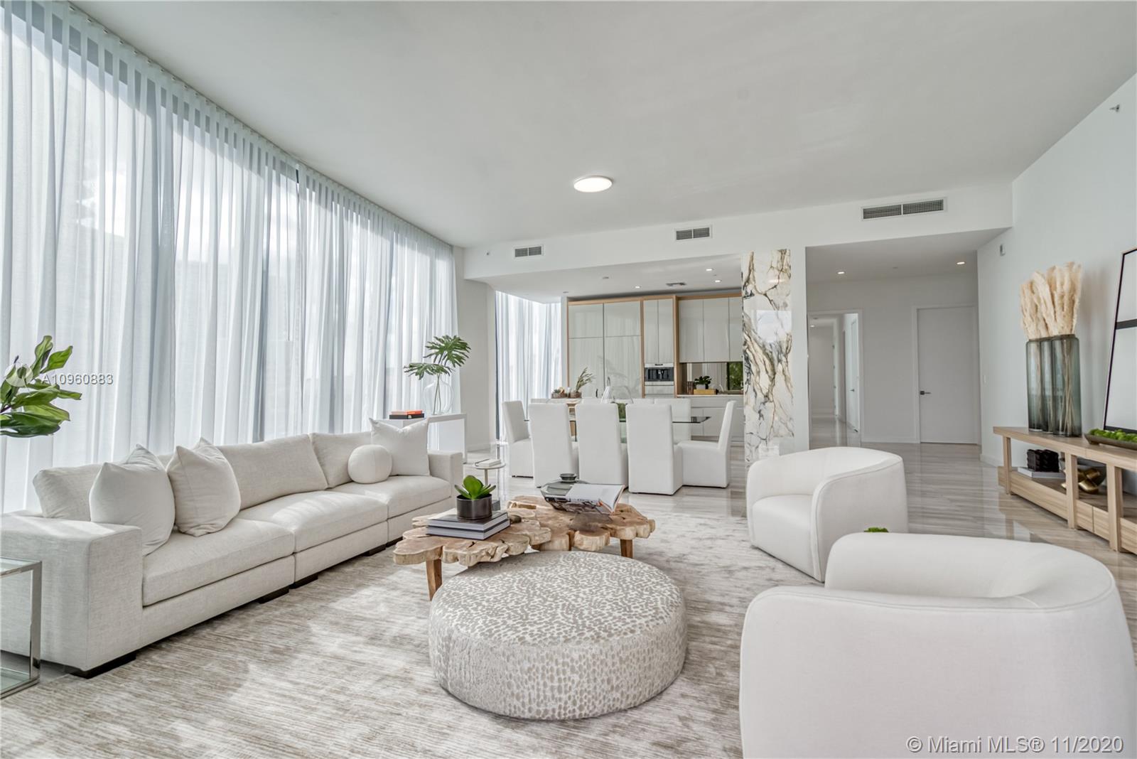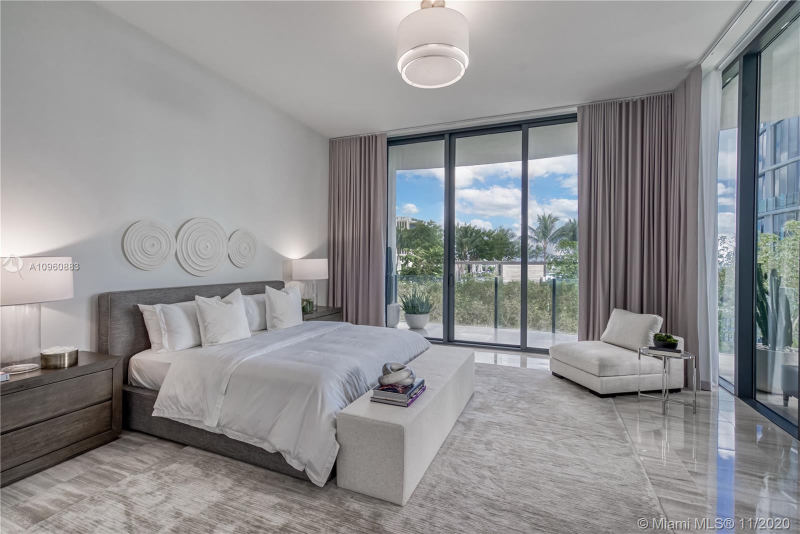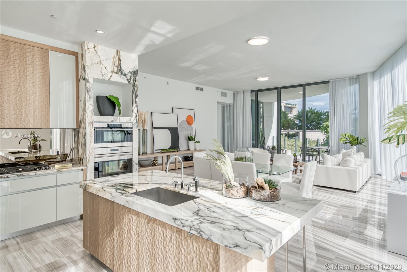 Stunning 4 Bedr + den residence in the luxurious Park Grove condo (T2) in Coconut Grove. This 3,233 SF condo offers 5.5 Baths, 12 ft ceilings, a large terrace and breathtaking views of the Biscayne Bay, Pools & Gardens. The gorgeous unit comes with a William Sofield designed kitchen and bathrooms. This unit boasts state-of-the-art finishes, marble floors, all en-suite bedrooms, his&her closets, Subzero fridge and freezer, Miele coffee machine & Wolf oven & microwave. Park Grove offers resort style services & amenities such as 24h concierge, butler service, 4 pools, main pool w/private cabanas, bay-view dining room, library, private screening room, club room, fitness center, in/outdoor yoga, outdoor event space, & wine cellar. Unit comes with a large laundry room and 2 parking spaces.