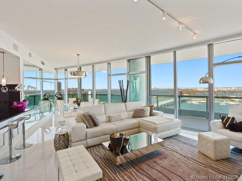 MAGNIFICENT MANSION IN THE SKY HAS IT ALL. Private Elevators open into its own lobby foyer. Walk through the entry doors and be mesmerized by Miami’s most spectacular panoramic water views. This 3 Bedroom+Den / 4 bath unit has 2 parking spaces and its own 270 sq ft A/C Storage Unit . Enjoy its modern luxury details like large white glass tiles, wide ample balconies, remote controlled Electronic Shades, A/C scent diffuser, Miel and Sub zero appliances. Located across from Downtown’s Museum Park, building’s amenities include: Doorman/ valet/ concierge services, 2 pools, palm laden sun deck, Cinema, Gym/ Spa, large party facilities. “06” unit line is building best line. Live where everyone dreams they want to be.