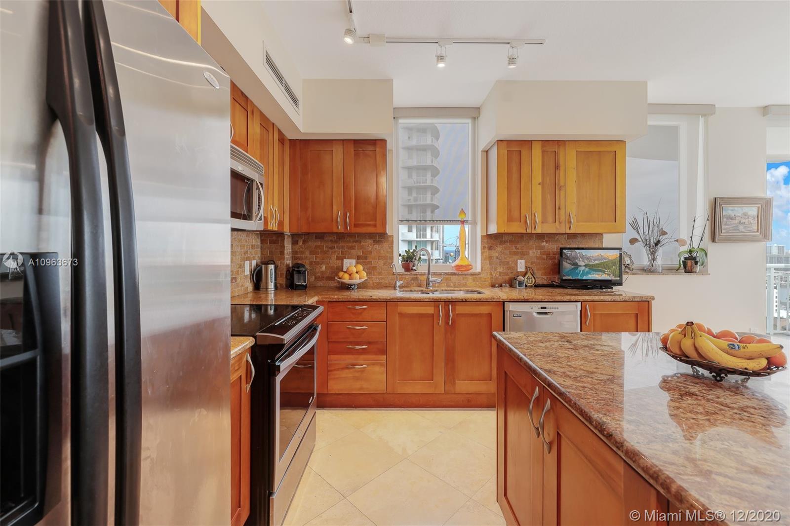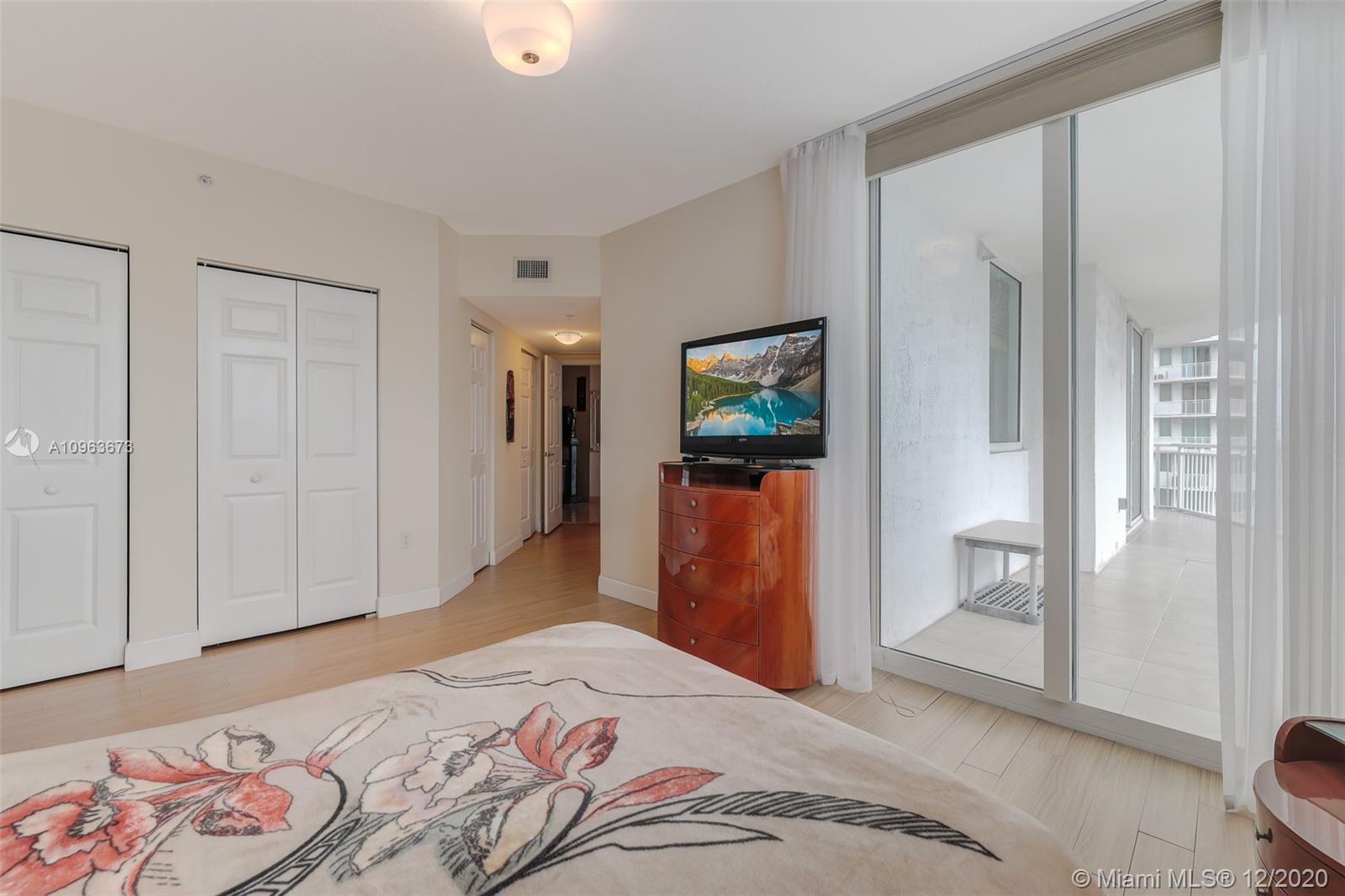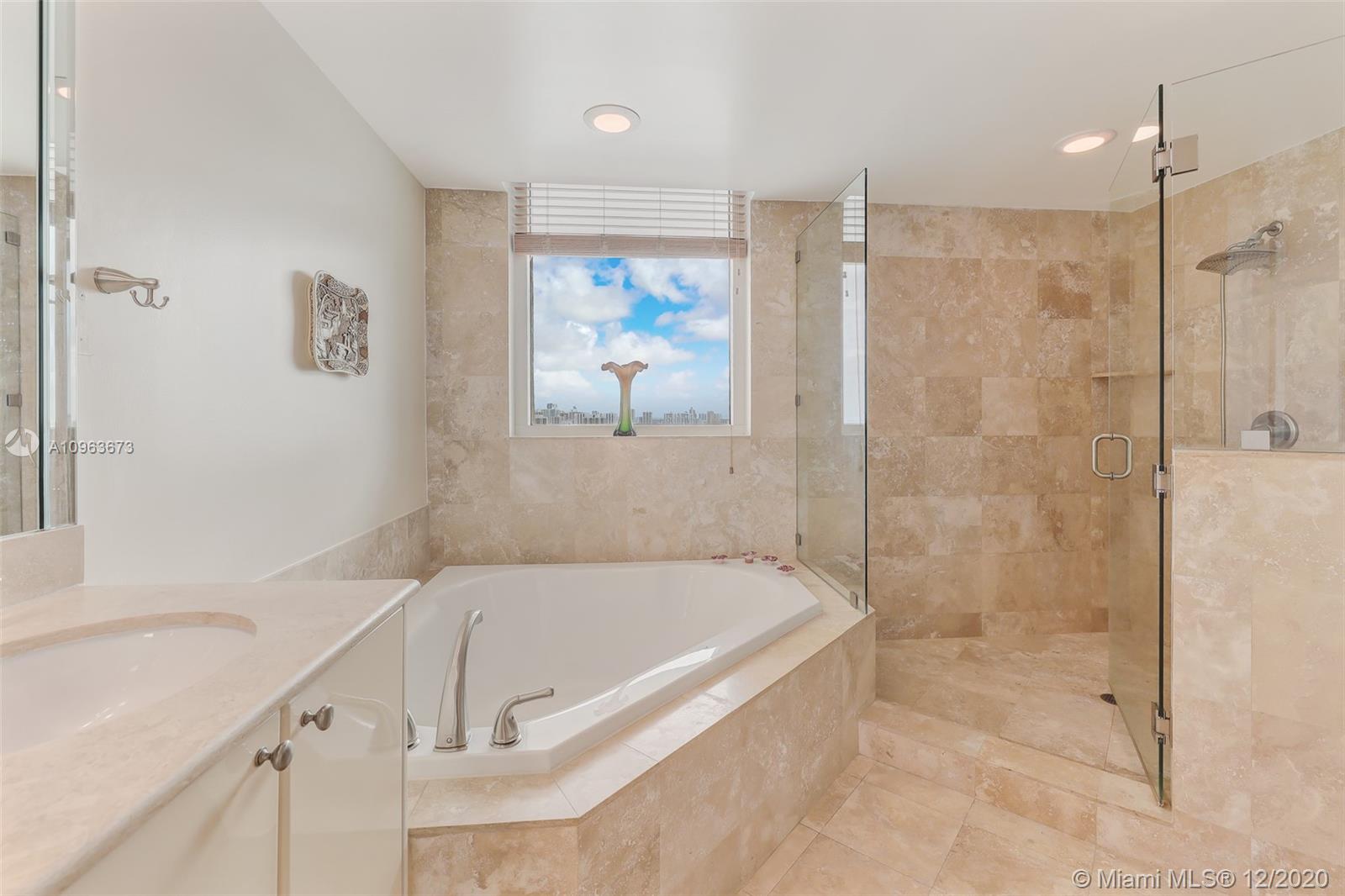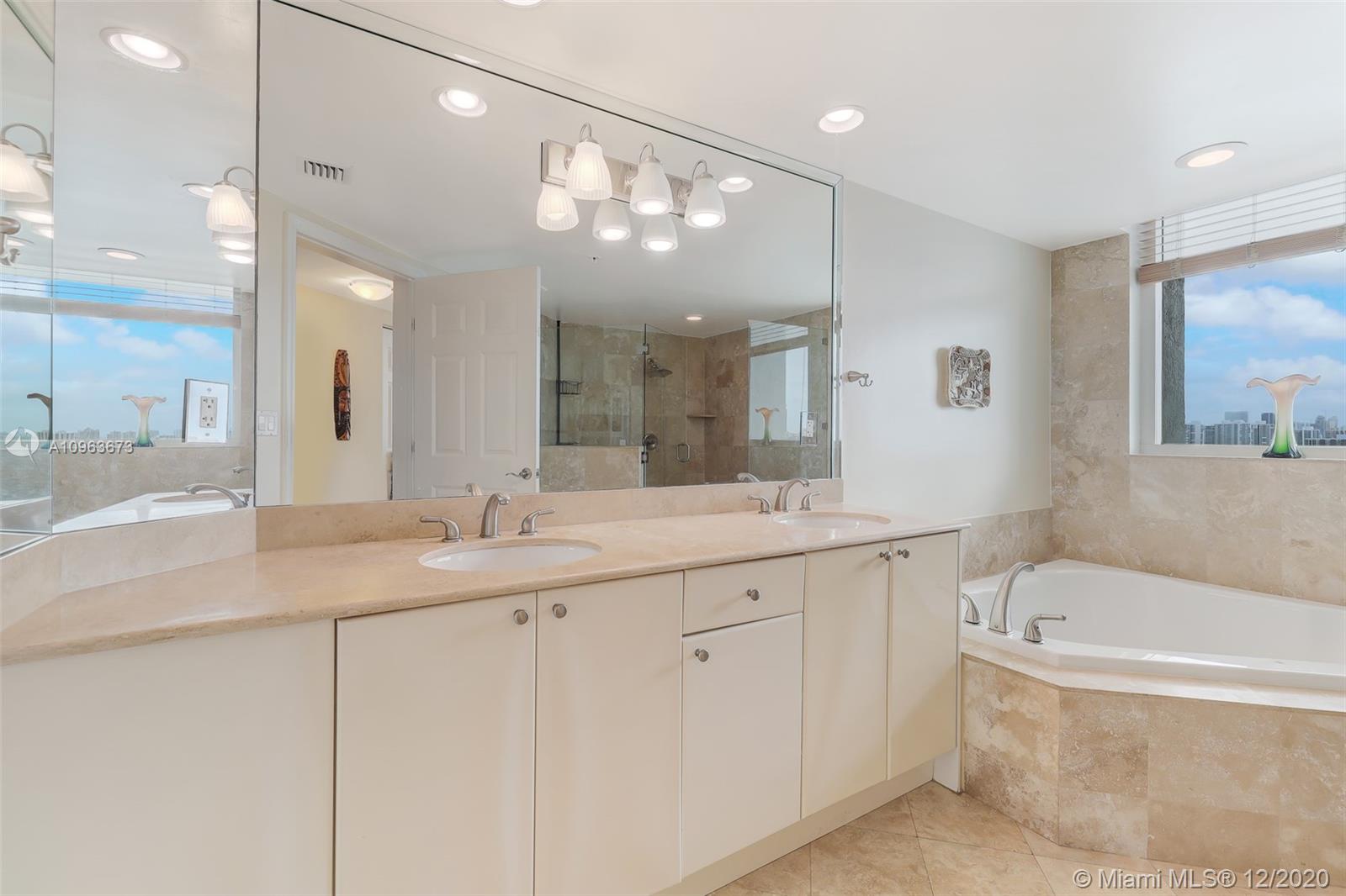 Gorgeous corner unit with wraparound balcony. Experience colorful sunrises and dramatic sunsets hitting the city skyline and the Ocean from your private terrace. Largest 2BR/2BA in the building! Marble floors in the kitchen and bathrooms and luxurious laminate wood floors in bedrooms. His and hers designer closets. Sunken tub and huge shower in master bath. Mint condition! 2 covered parking spaces and state of the art amenities for all lifestyles. Walk to shops, restaurants and the beach! Pet friendly building. Can be rented 2/year!