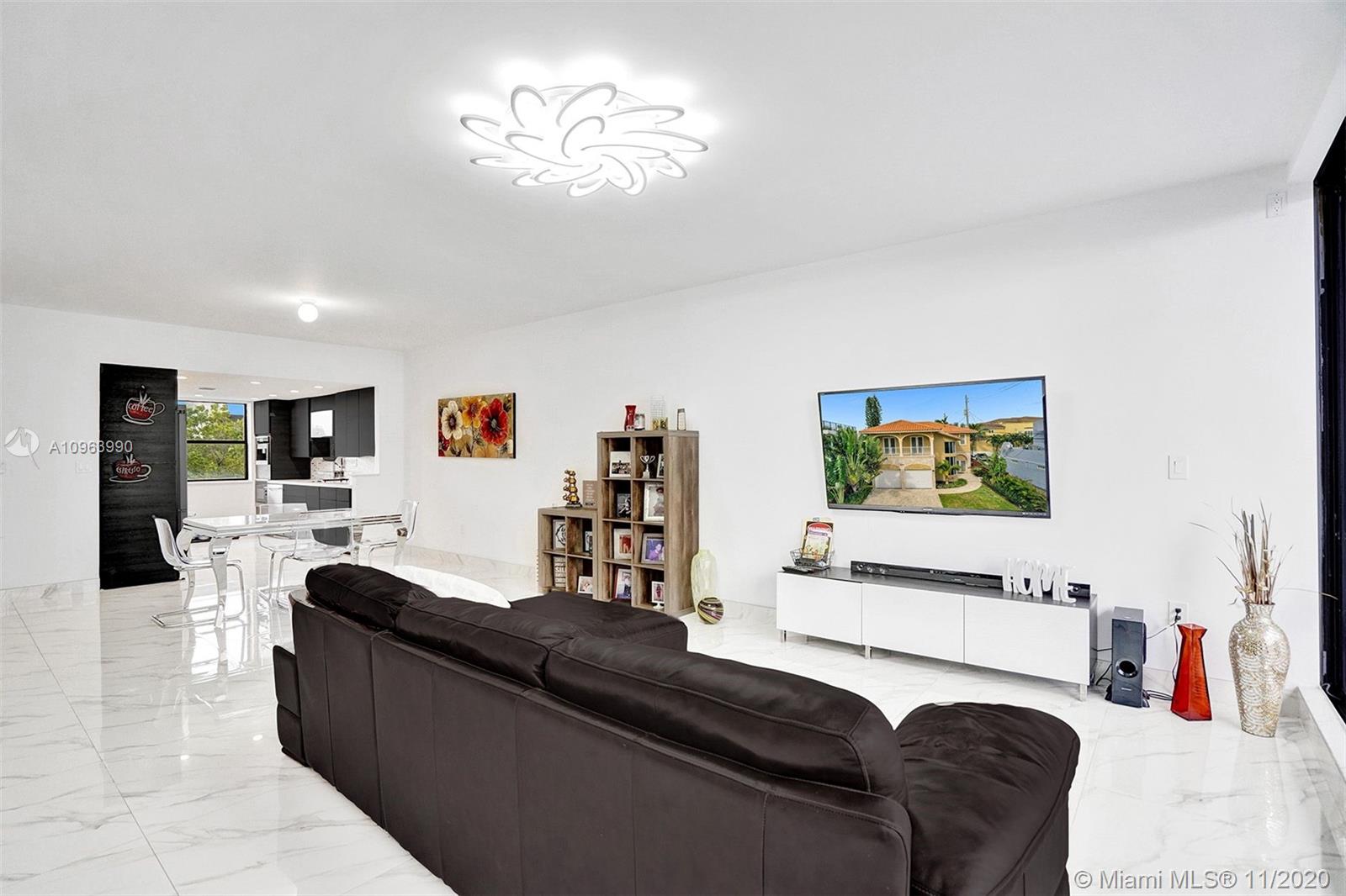 Stunning waterfront 2-story townhouse, completely & tastefully renovated, private secured elevator entrance. Spacious open floor plan boasts vaulted ceilings and a loft entertainment area in addition to the main living room, both with serene intracoastal views. Remodeled kitchen and bathrooms with high-end appliances Viking and Miele, European cabinetry, porcelain 32x32 tile throughout, build-in custom closets, European doors, fully wired for smart-home installation, tankless electric water heater & full-filtration system. Poinciana Island Yacht Club is a hidden gem 24/7 secured gated waterfront community in the best A-rated school district in prestigious Sunny Isles, offering 2 pools, gym, tennis & basketball courts, clubhouse, located across the street from the Beach. NO BOAT DOCK.