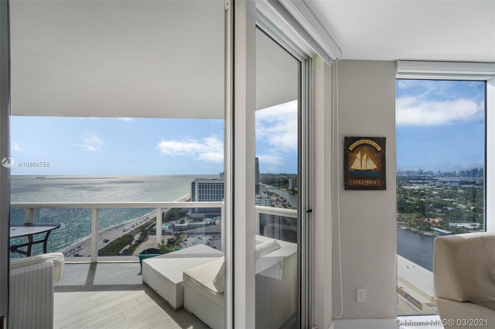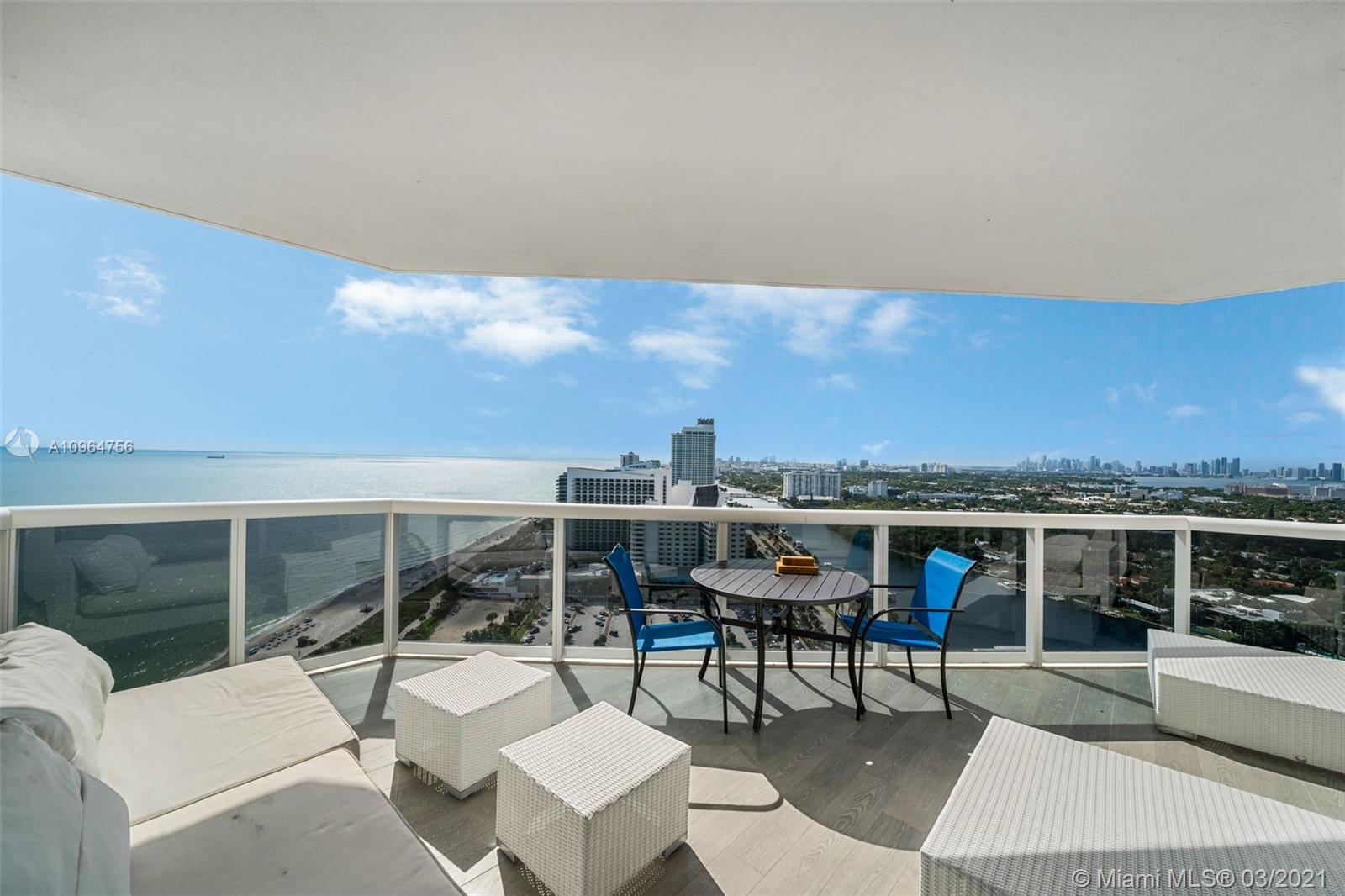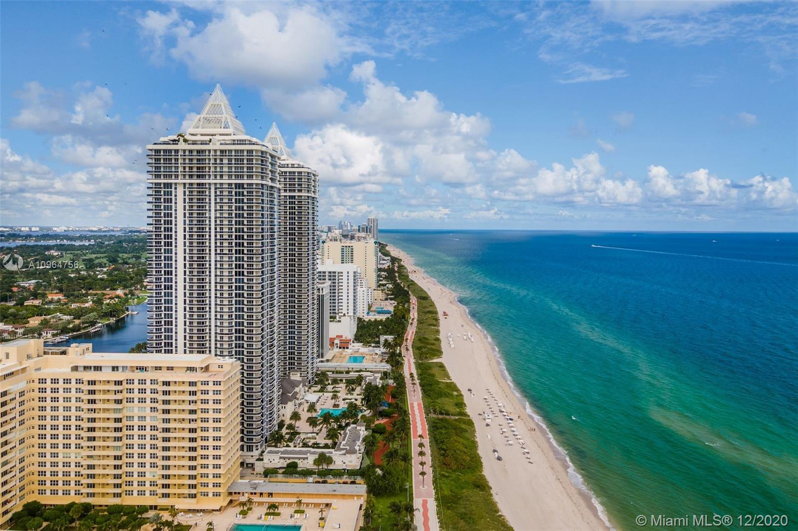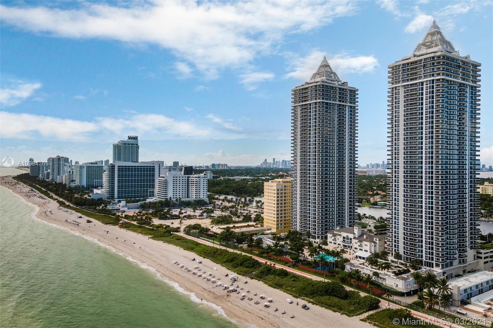 The Green Diamond along Miami Beach’s famous Millionaire’s Row. The apartment features spectacular breathtaking unobstructed south views of the ocean, bay, and the city from every room. With extra-large balcony wrapping around the entire length of apt accessible from every room. Enjoy 1st class luxury beach front living. Amenities: 24hr security, valet, concierge, tennis, pool, towel service, cafe/market w/room service, a 16,000sf oceanside clubhouse/spa, lighted tennis court, fitness center equipped with the latest technology, personal trainers, free workout classes, steam/ saunas, hot tubs, card & party rooms, nursery, playroom, billiards, business center, beach attendant, and more! Just minutes from SOBE, MIA Airport, Midtown, Wynwood, Performing Arts & Bal Harbour Shops.
