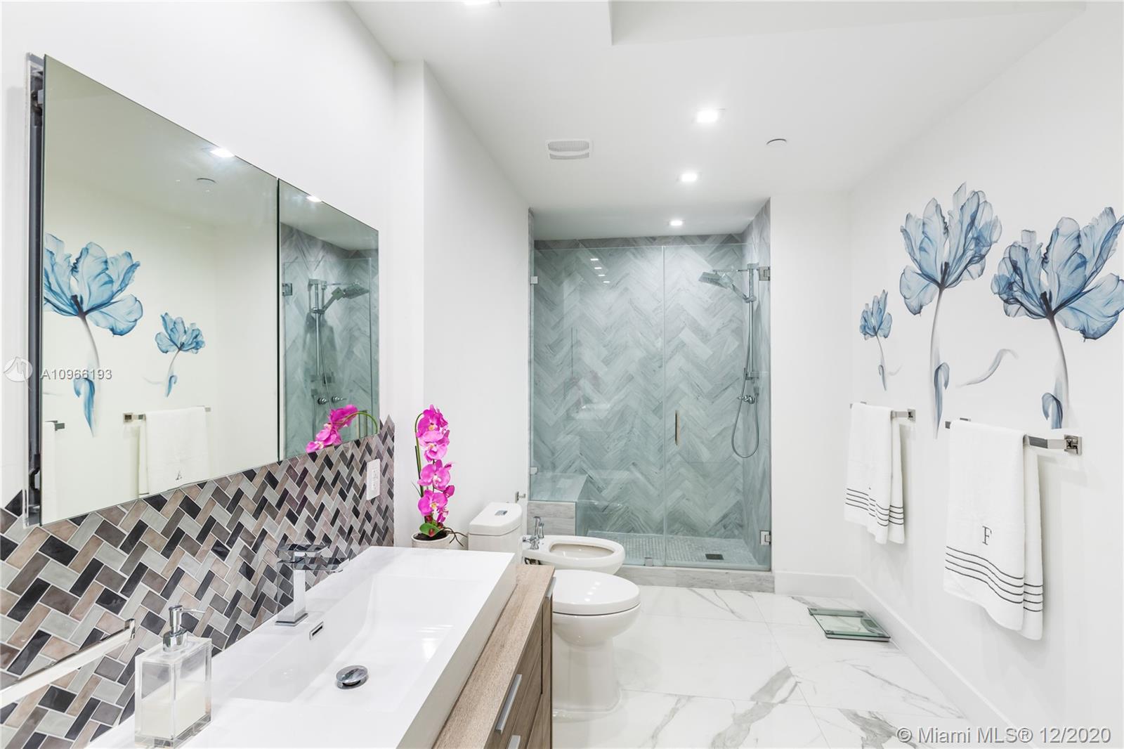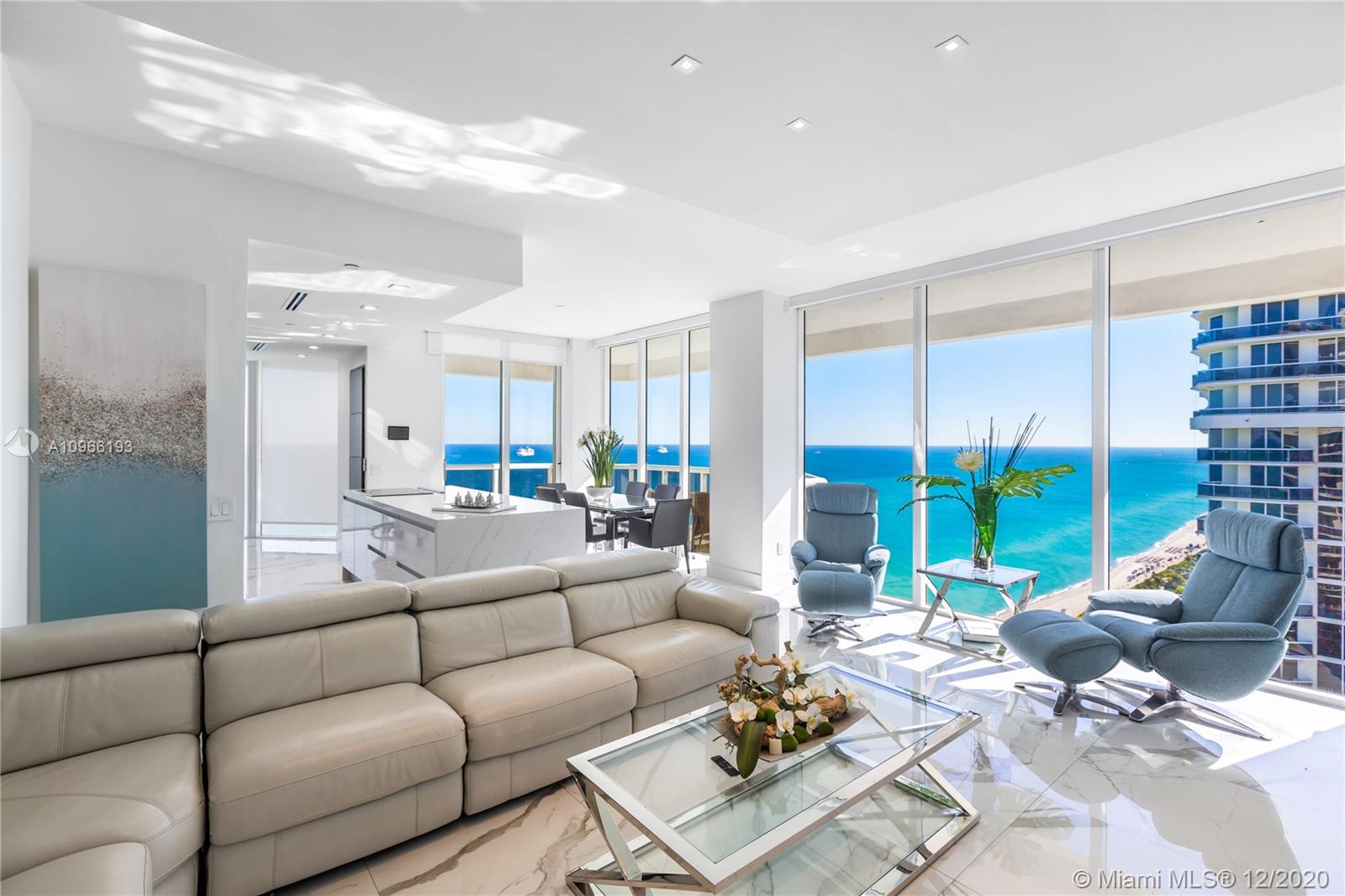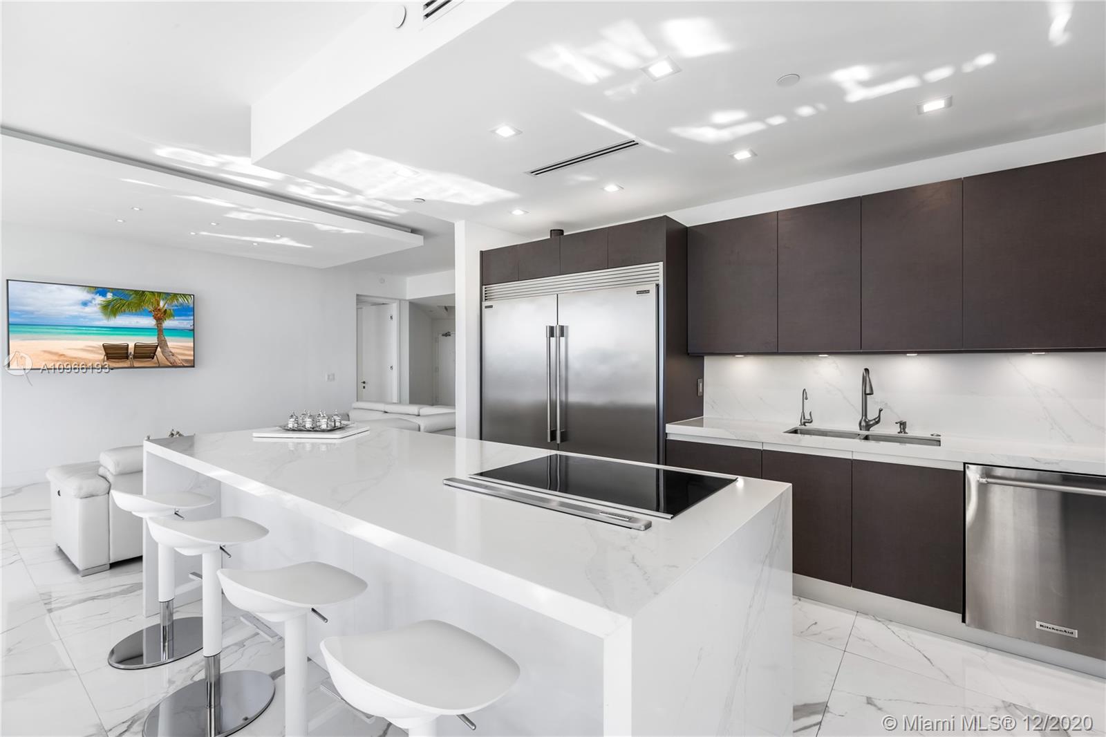 Enjoy breathtaking views of the ocean, bay and city skyline from this Southeast corner unit that boasts 2,010 sq. Ft. This residence has 3 bedrooms & 3 bathrooms and sits way up high on the 40th floor. Some of the features of this totally renovated unit includes; double door entry, two balconies, floor-to-ceiling glass windows, recessed lighting, electric shades in all rooms, high ceilings and exquisite flooring throughout. Large open kitchen with oversized island counter, custom cabinetry & stainless steel appliances. Natural light from the dining and living area spills into the kitchen, making it feel even more open and light. The primary bedroom master with spacious custom designed walk-in closet. The primary bathroom is outfitted with Jacuzzi, separate shower & dual sinks.