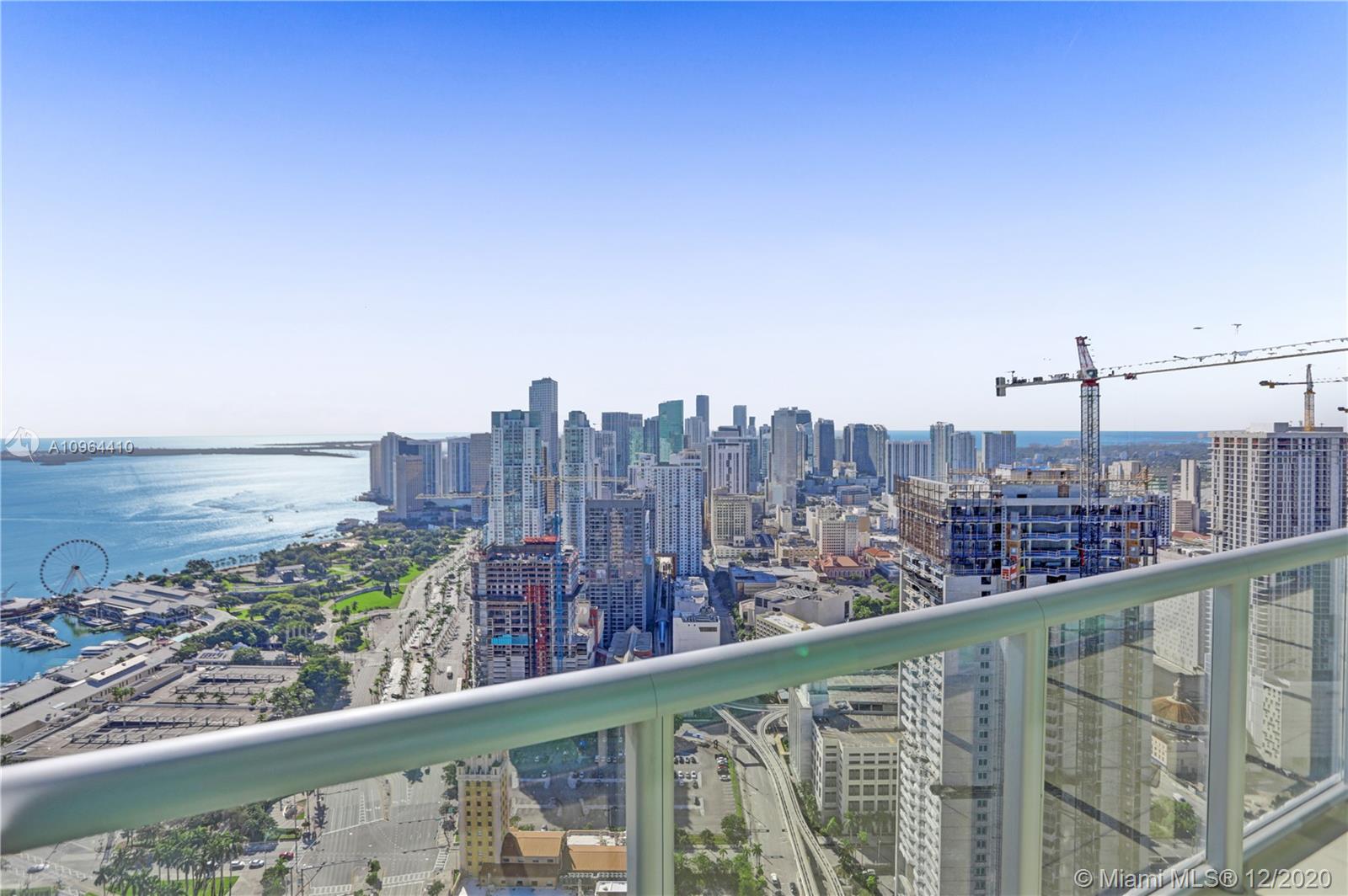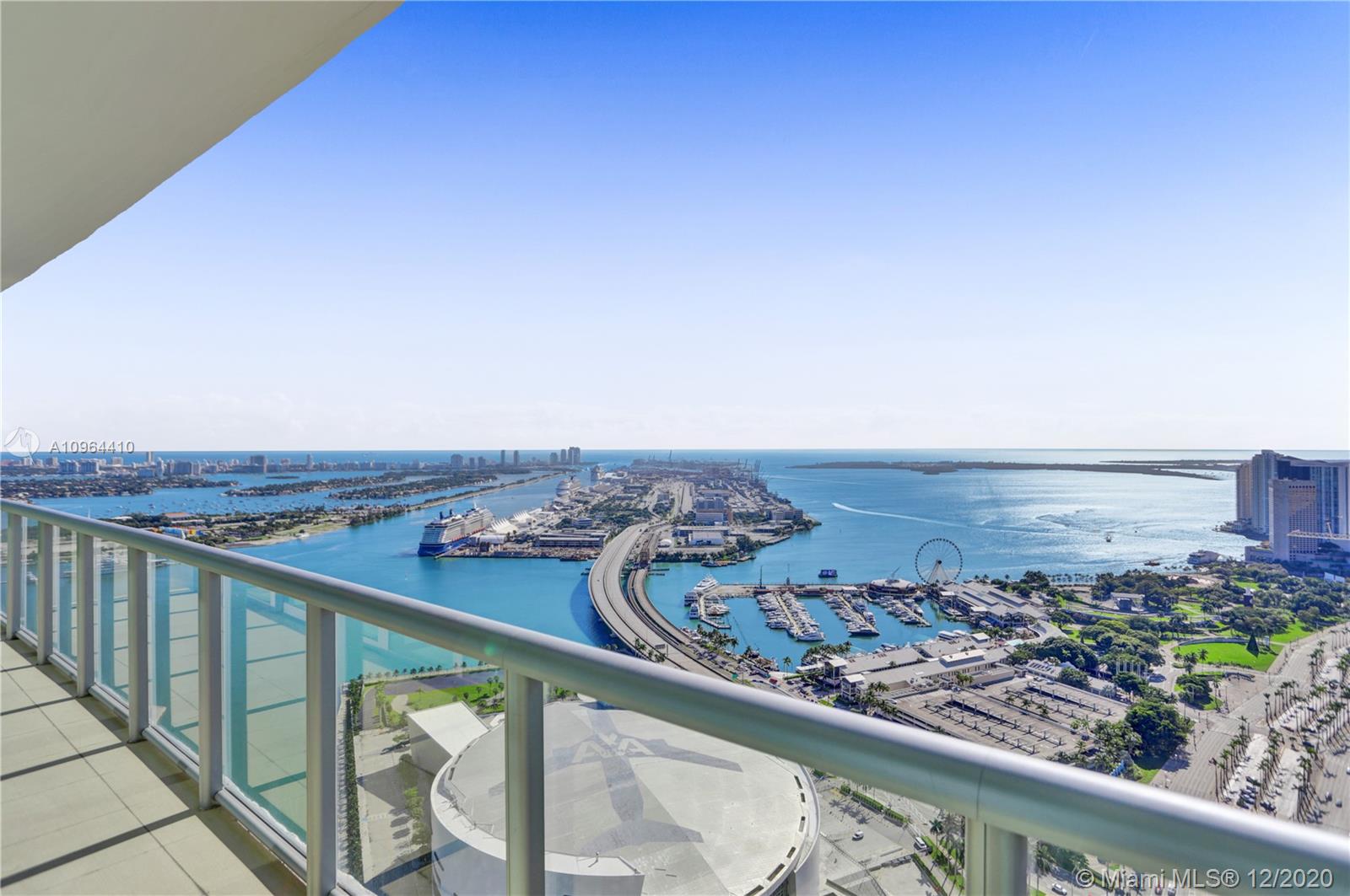 Jaw-dropping Views in floor 51 at the Gorgeous Marina Blue! Enjoy completely unobstructed views of the Biscayne Bay, the Atlantic Ocean, and bustling downtown Miami. Sleek and Modern Porcelain tile floors, high ceilings, impact windows, big balcony and washer/dryer. This clean and open floor plan has a kitchen island and half bath for your guests. Convenient located cover assigned parking! . Full-service building with luxury amenities: 24hr security, concierge, a sky beach with 2 amazing pools, Jacuzzis, beach volleyball courts, mini golf and gym. Walk to Museum Park, Perez Art Museum, Frost Museum of Science, and Miami World Center, coming soon! Close proximity to Brickell, Miami Beach, Wynwood and the Airport. This is not to be missed!