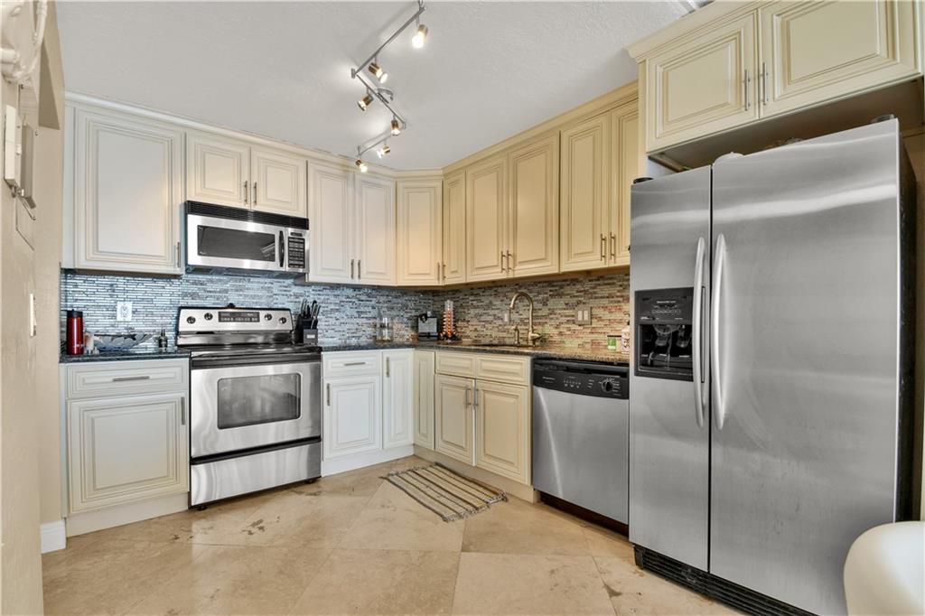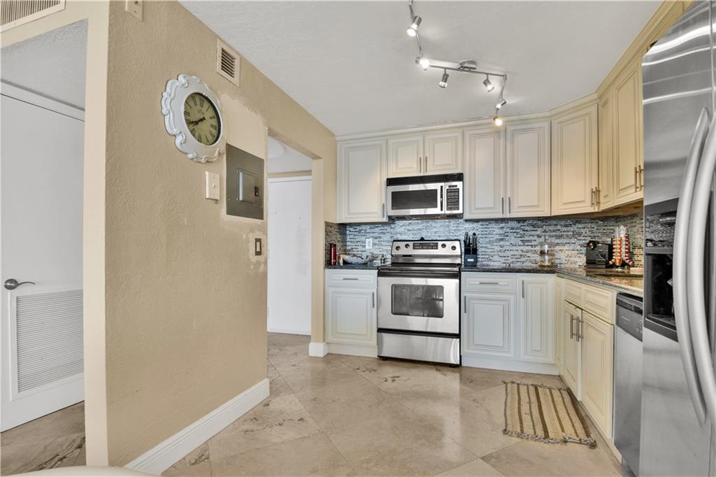 DIRECT OCEAN VIEW! Travertine Marble Flooring Throughout, Entry to Balcony from living room and master bedroom. Remodeled Kitchen and baths. Special assessment paid in full!