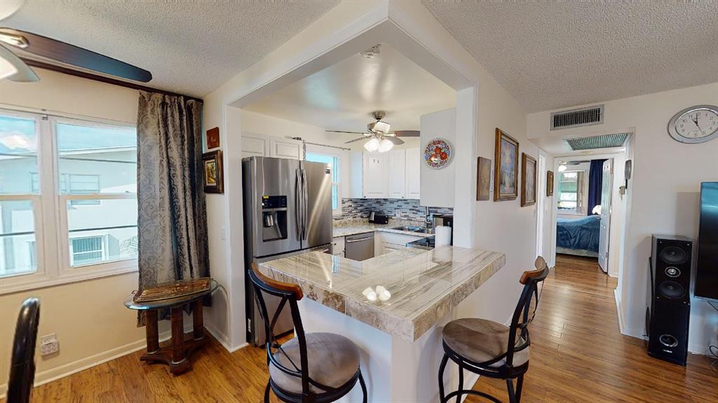 Recent price reduction on this beautifully renovated condo with a gorgeous kitchen and bathrooms. Located in Century Village, a 55+ community. Take note of the upgraded open concept with breakfast bar, double Stainless Steel sink, pull out faucet, modern backsplash, new countertops, soft close drawers, and matching Samsung SS appliances (Fridge, Range, DW, Microwave). Waterproof engineered hardwood flooring throughout the unit. All windows and door doubled from the inside which is great against humidity, heat and any noise. All new 6 panel doors. 5 'Hunter' ceiling fan/light fixtures. Beautiful view from enclosed lanai of natural preserve area where wildlife such as deer and water birds may be seen.