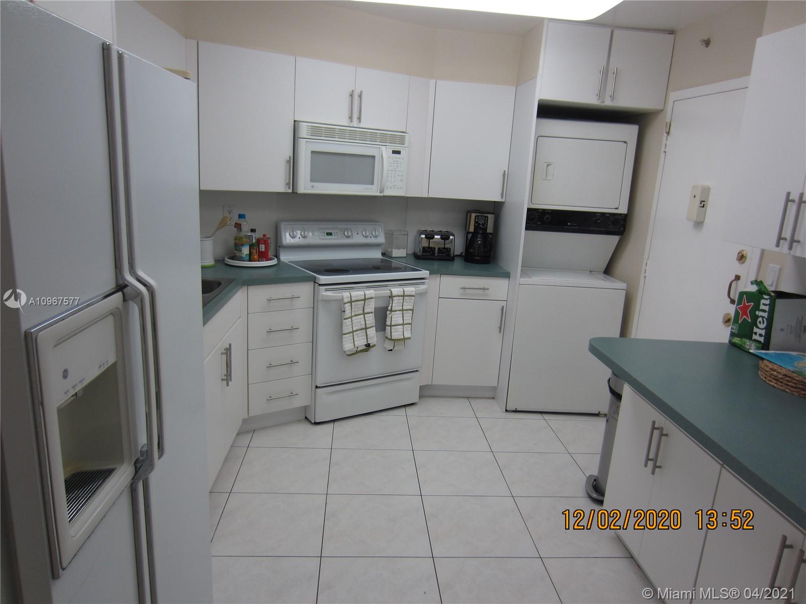 A must see! Delightful 1 Bed, 1 and 1/2 bath apartment with skyline and city views. This unit offers high ceilings, partially updated kitchen and baths on a very appealing layout. Unit also features large master bedroom with two walk-in closets, ample kitchen area which also features stackable washer and dryer inside unit. Currently tenant occupied but tenant will leave with 30 days advanced notice. Unit located in Tower with gymnasium & restaurant for optimal convenience. Just steps to the Beach. Complex offers many amenities such as tennis, 2 pools, restaurant, beauty salon, BBQ area and more. Easy to show.