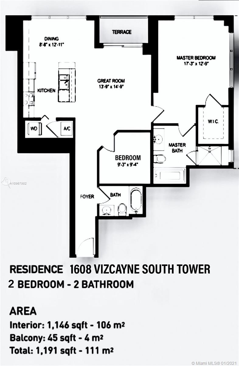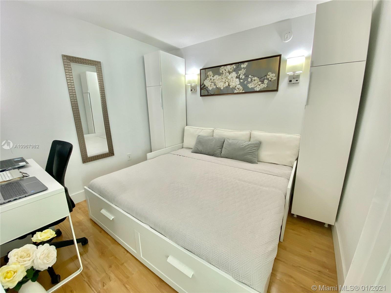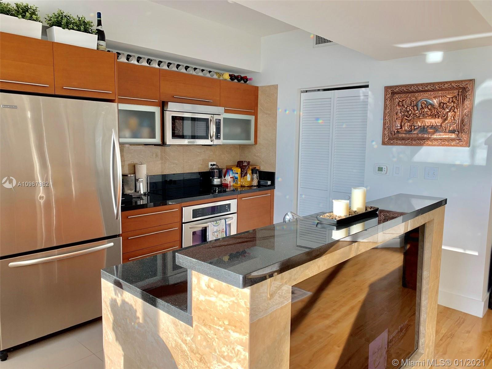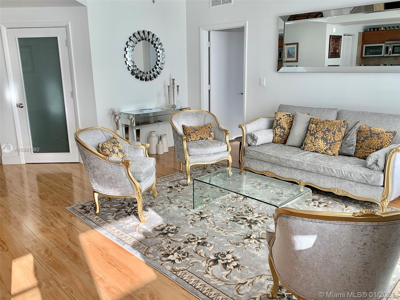 Unique one of a kind spacious corner unit (1,146 SqFt) at the Luxurious twin-tower Vizcayne Condo in the heart of Downtown Miami. Completely renovated and 100% custom-built 1 BR + Converted Den/ 2 Full Baths. Oversized Master Bedroom. Den converted to a second bedroom with built-in closets & sofa converts to a queen bed. Living room has a custom marble island with a built-in TV. Kitchen has high-end Stainless Steel appliances & marble countertops. 2 Full bathrooms with marble floors, showers & glass doors. Huge custom walk-in closet. New Full-size washer & dryer. Beautiful honey-color Real Wood Floors (NOT laminated). Unit comes with 1 parking space and 1 storage unit. Condo offers 5-star resort-style amenities; 4 tropical pools, jacuzzi, spa, gym & 24 hr lobby receptionists and security.