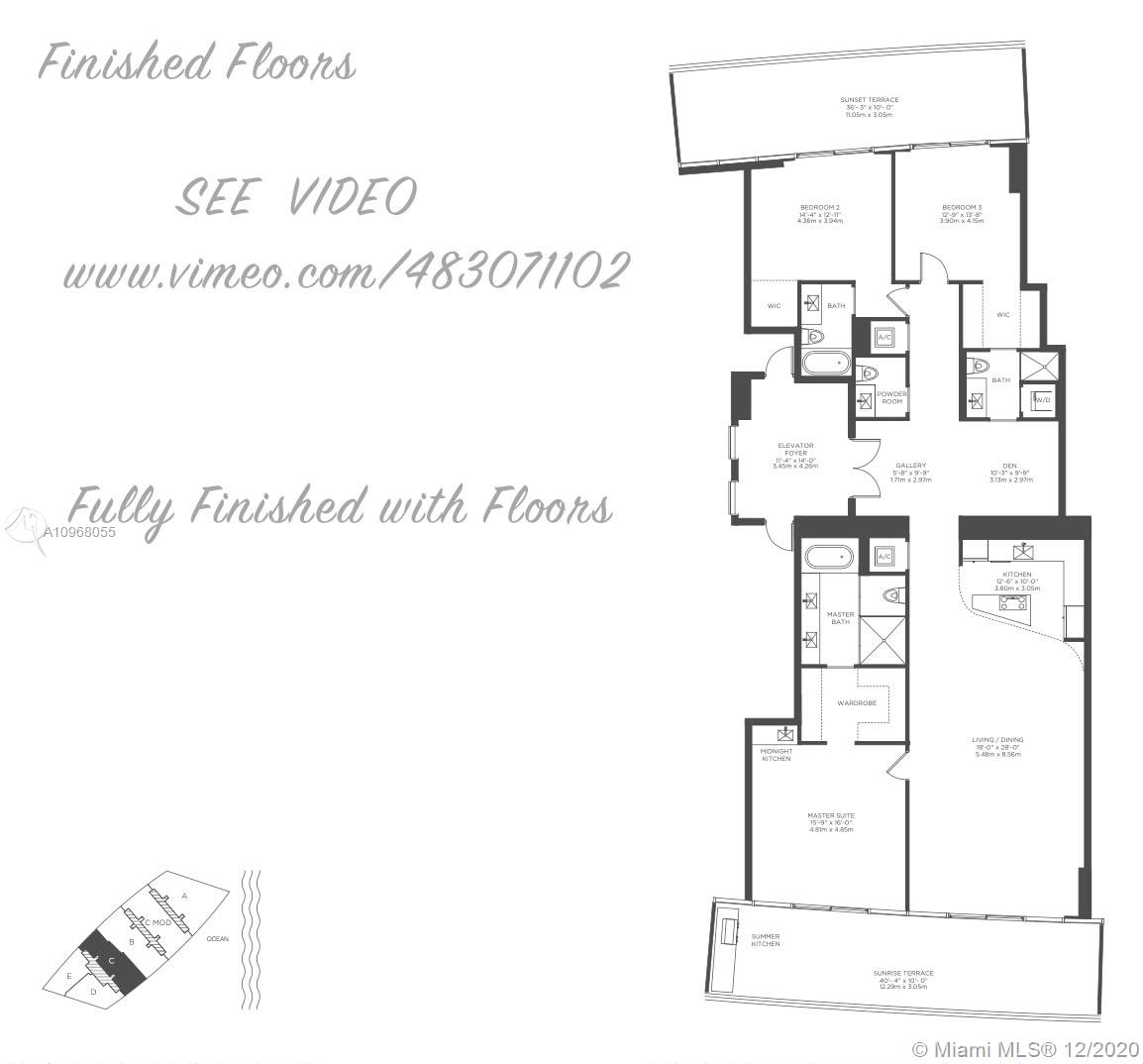 SEE VIDEO !!! Finished floor, closets and black outs. Breathe in the ocean air from the beautiful, spacious designer-ready unit with stunning ocean and city views. Unit # 1903 (3 bedrooms and den). Two 765 sq. Ft. Decks with a summer kitchen on the ocean side. Italian design kitchen with elegant edges, imported stone countertops and backsplashes. The kitchen has Sub-Zero & Wolf appliances. Armani has designed the building with perfect curves and a state-of-the-art theater, game room and gym. Experience true pleasures in the spa, salon, restaurant and salon. Relax in the seaside pool, jacuzzi and outdoor bar.