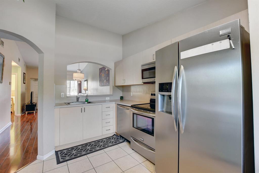 NICEST UNIT IN THE COMMUNITY! very well maintained unit, designed with high end laminate flooring, modern light fixtures and beautiful paint schemes. The kitchen is spacious equipped with stainless steel appliances and a lovely breakfast nook under the kitchen window. Spacious Master bedroom has vaulted ceilings and a fabulous walk in closet. HURRICANE IMPACT WINDOWS!BRAND NEW INSULATED WATER HEATER! BRAND NEW AC UNIT !The gated community is conveniently located with easy access to the turnpike, shopping and restaurants. Pet friendly.