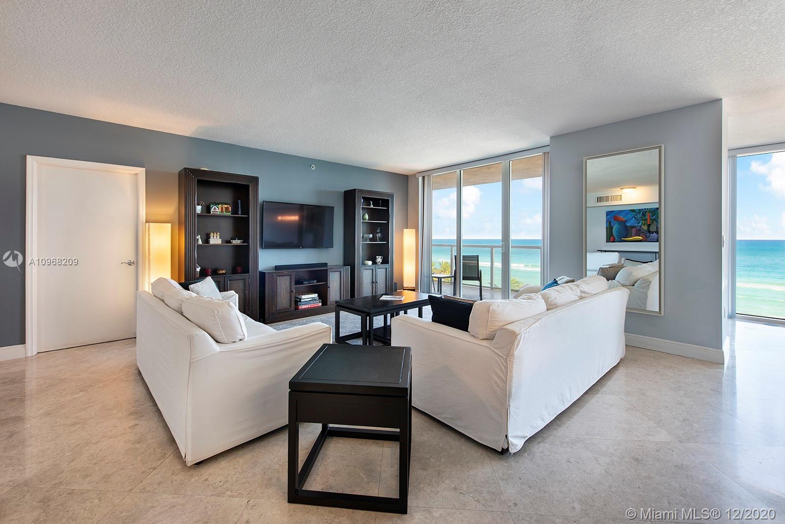 Watch the waves roll in on the beach from your 6th floor Oceanfront home. Open floor plan and spacious balcony, this eye level view is perfect ocean front living. The La Perla condo is a luxury high rise with amazing amenities. Including pool, fitness center, kids playroom lounge and full beach service. Adjacent to the building is the Sunny Isles Pier, perfect for your morning walks. Flexible rental policy and pets permitted. Seller firm on price.