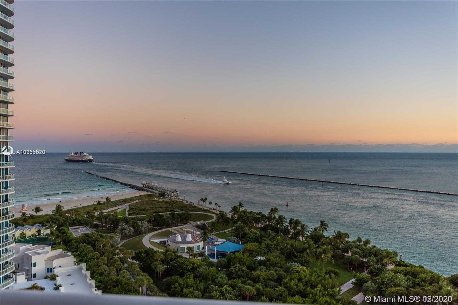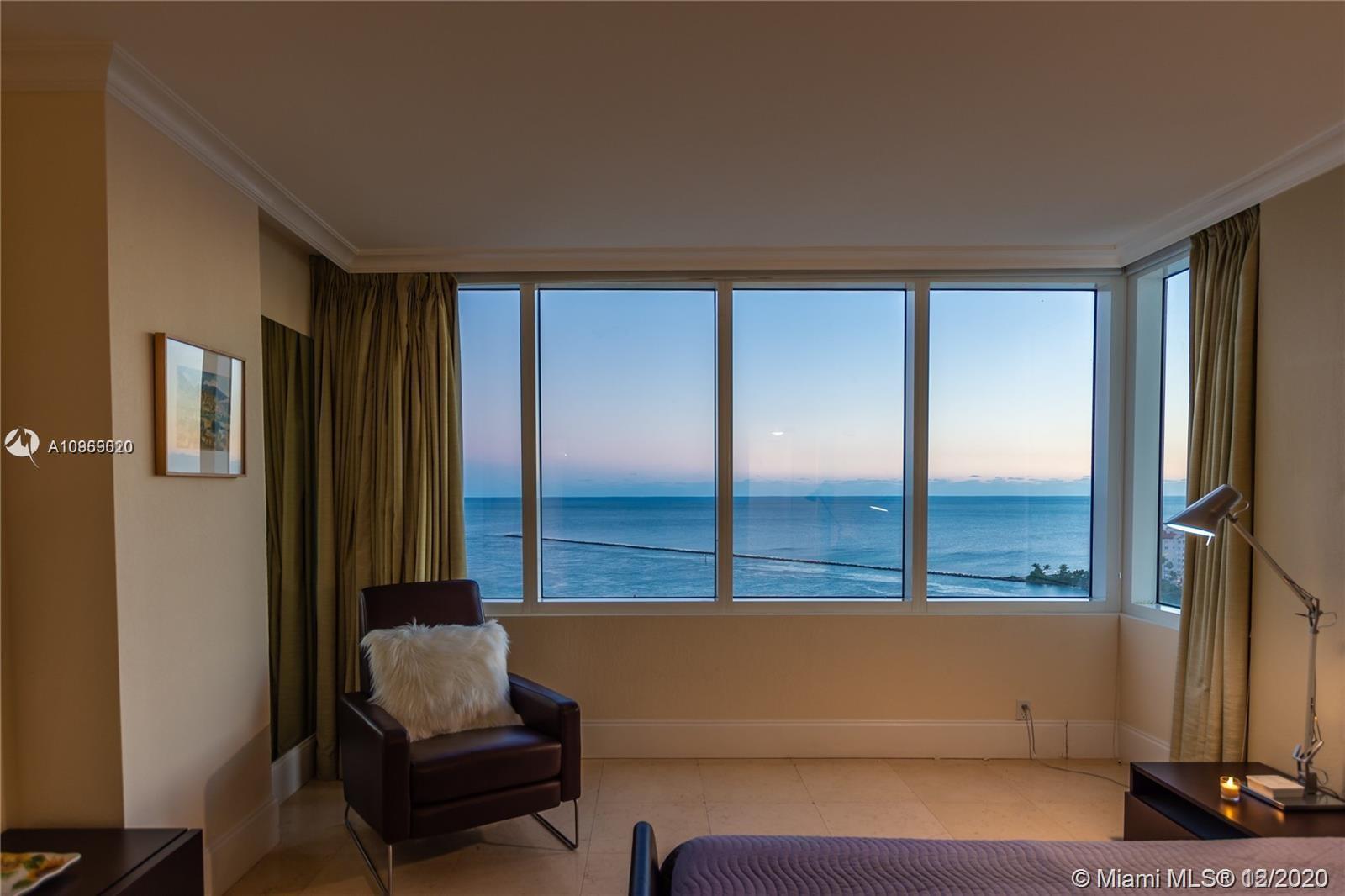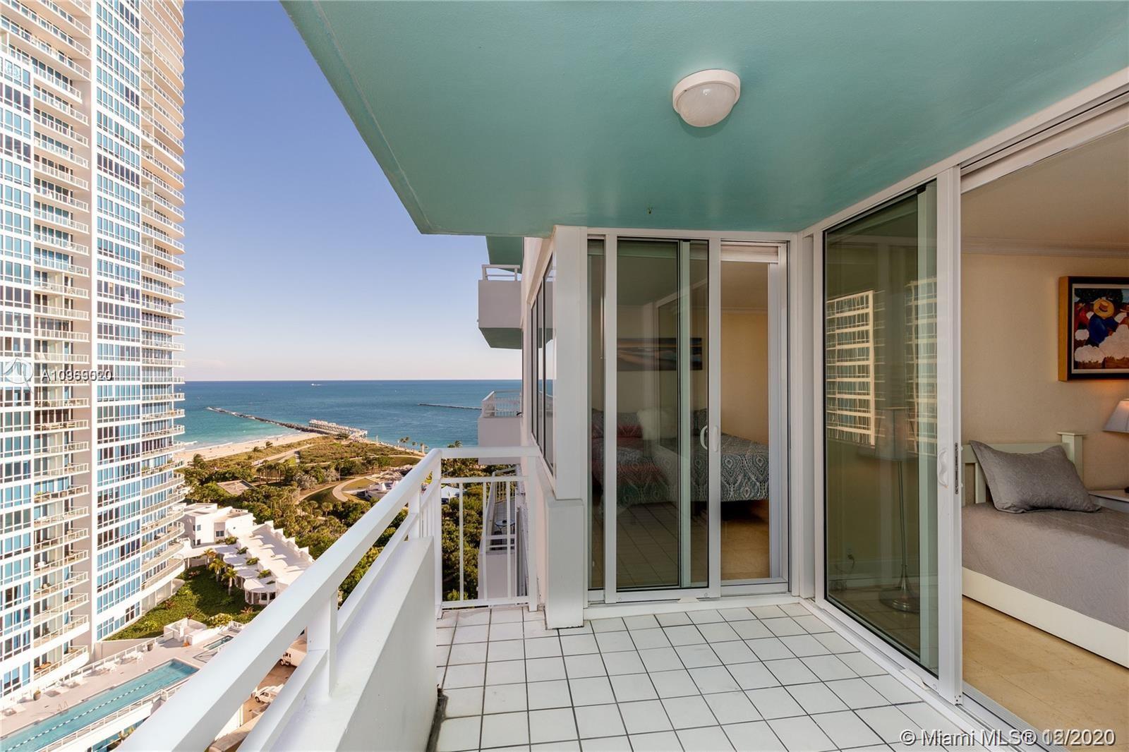 With views this breathtaking from every room, you’ll know why this 04 line rarely comes on the market! Be mesmerized by spectacular scenes of the ocean, bay, Miami Beach and Miami from this spacious home high in the sky! Relax on the wraparound balcony and be awed by both sunrise and sunset. Impact floor-to-ceiling windows make it all the more convenient to take in the beauty. Eat-in kitchen delightful now or ready for you to open into living and dining. Split bedrooms provide extra privacy. Updated Master bedroom-bath suite retreat features separate tub-vanity and large shower salons. Two guest rooms – one ensuite—share a balcony overlooking the ocean. Luxury, resort-style amenities with significant upgrades and renovations underway to make this desirable property even more exclusive!