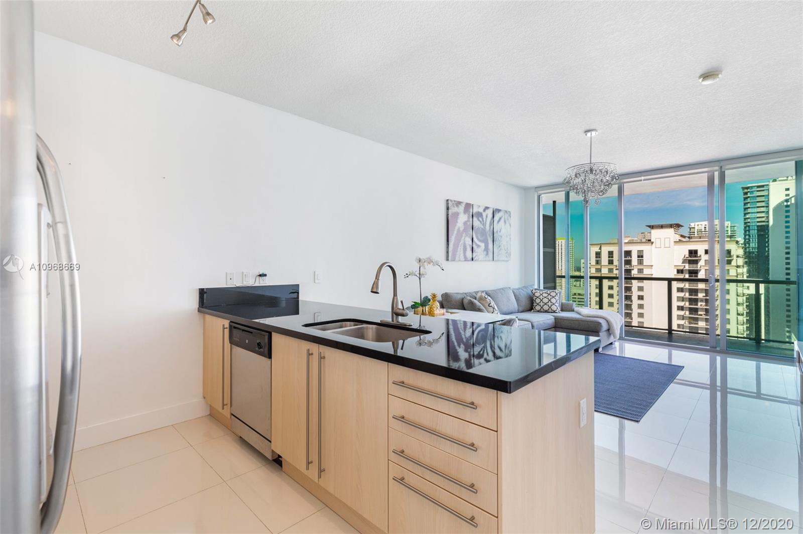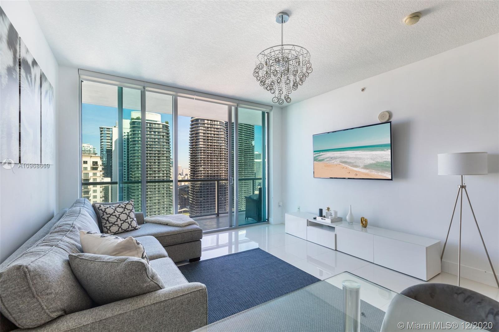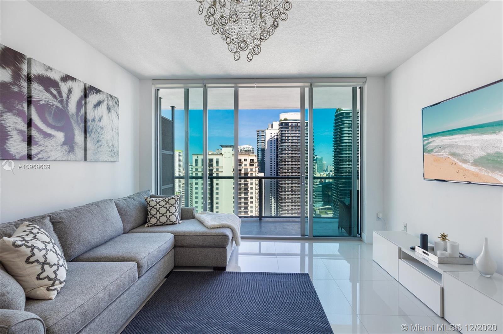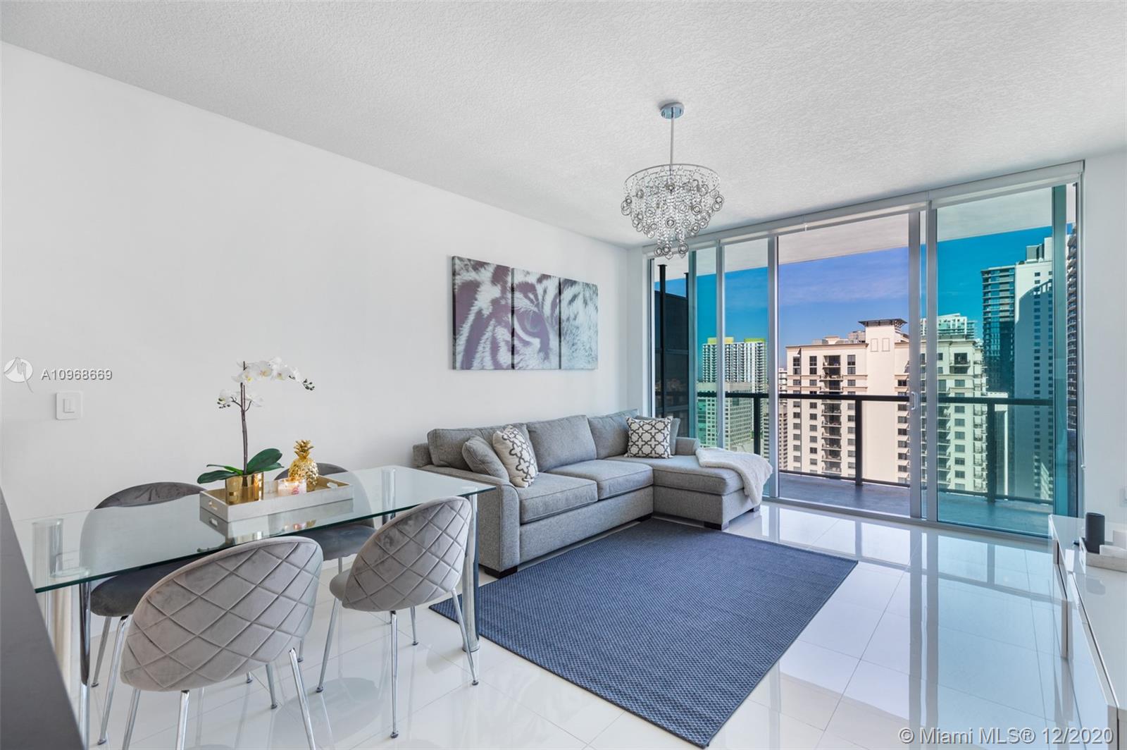 Live Limitlessly in this pristine 36th floor unit at Axis Brickell with incredible city views. Sparkling white tile floors throughout make the space look bigger & brighter, and the seller kept it very clean. The classic 1 BR layout has a kitchen with stainless steel appliances & a peninsula that flows right into the living space. A small hallway with a new washer & dryer leads to the master bathroom that has a shower & soaking tub. Unit can be purchased w/ or w/o furniture. The master bedroom & living area connect to the super wide balcony with plenty of room to put chairs & tables. Axis is located right across the street from the Brickell metro station & just steps from restaurants, shopping, and Publix. Amenities include 2 pools, fitness center, spa, kids room, business center, and more.