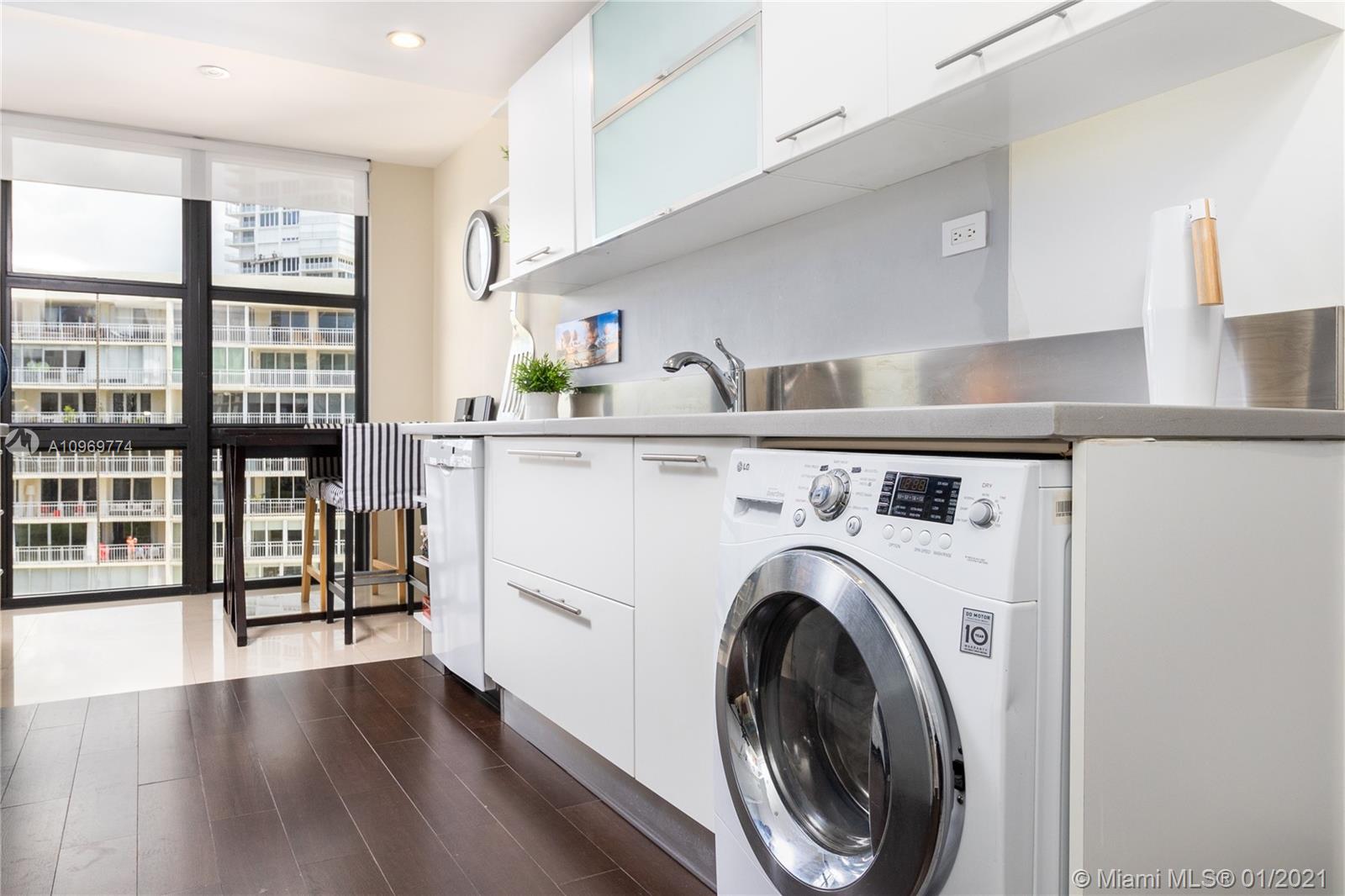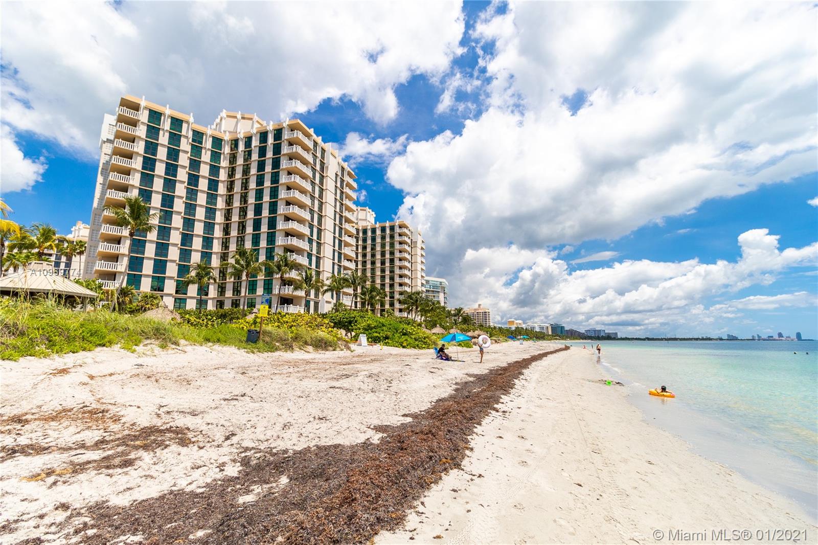 Direct access to the beach! This beautiful corner unit offers a great spacious layout and plenty of natural light. Upgraded kitchen with porcelain floors in social area and wood floor in the bedrooms. The unit has 2 beds/2 baths, 2 parking spaces and a storage. Newly installed impact windows and A/C. In addition, this unit may be converted to a 3rd bedroom. Living in the unit you can have the privilege of enjoying the beautiful views and sunsets from the balcony and amenities the community offers. Make your day! Go right to the beach or to the pool and eat at the in-house restaurant. Take part in water sports, play tennis, go to the gym, or just relax in the Gazebo enjoying the sunrise. You have plenty indoor options: Billiards, a game room, a library, and a spa.