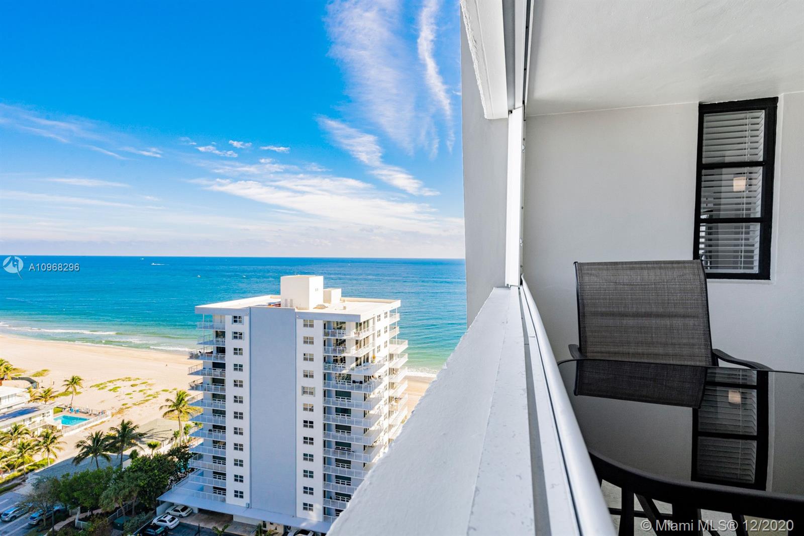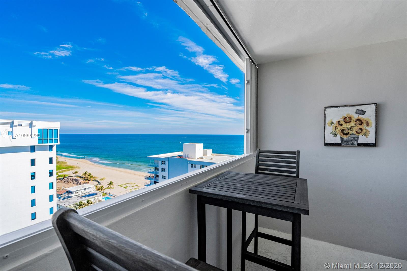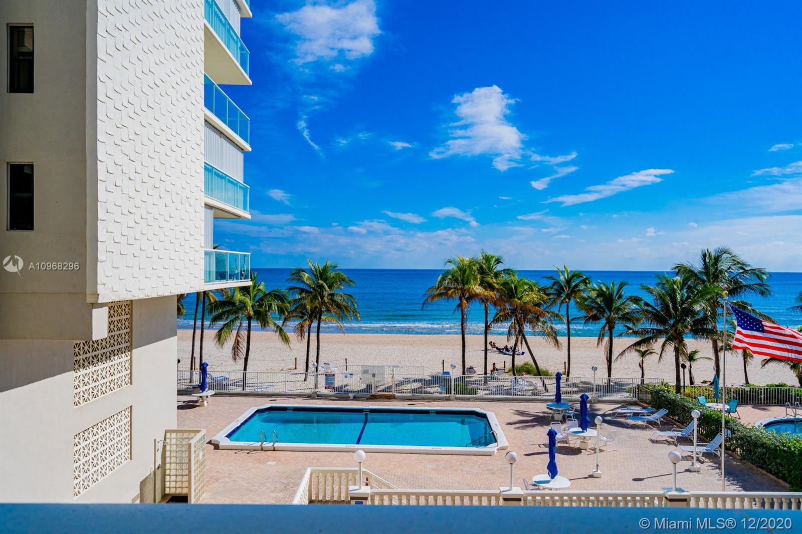 PENTHOUSE WITH TWO BALCONIES AND DIRECT OCEAN VIEWS! RENOVATED -TURN-KEY! VIEWS! VIEWS! AND MORE VIEWS! This 2 bedroom/2 bath condo is located directly on the BEACH. Beautifully designed kitchen with high-end cabinets and counter tops. Separate small work area off primary bedroom. Primary bedroom also has its own private balcony. Guest bedroom has two large closets. Amenities: covered parking. security 24/7. club room with ocean view, billiard, heated pool on the beach, with large BBQ area, sauna. Close to restaurants and shopping and Pompano Pier. Priced below comps to sell NOW! Rent after one year, 90 day minimum. Do not miss out on this chance to own a piece of paradise directly in Lauderdale-By-The-Sea on the beach!