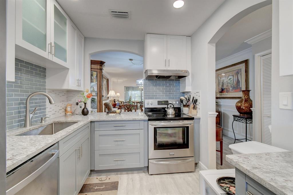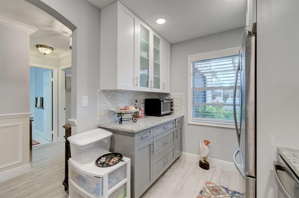 Gorgeous home, completely renovated and ready for a new owner. Everything has been done for you. Kitchen has Shaker wood cabinets, granite counter tops, designer subway glass tile backsplash and stainless steel appliances. Exquisite wood plank flooring, baseboard, crown moldings and fresh interior paint will greet you. Both bathrooms have been completely redone and show very well. Enclosed rear patio with full size washer and dryer overlook your lovely water view. Roof 2014, Heater 2018, A/C 2010. Active Adult Community with a clubhouse, pool, fitness center and game room. One small dog under 20lbs allowed. Great central location with easy access to shopping, restaurants, beaches, major highways and all that South Florida lifestyle has to offer... WINE COOLER DOES NOT CONVEY.