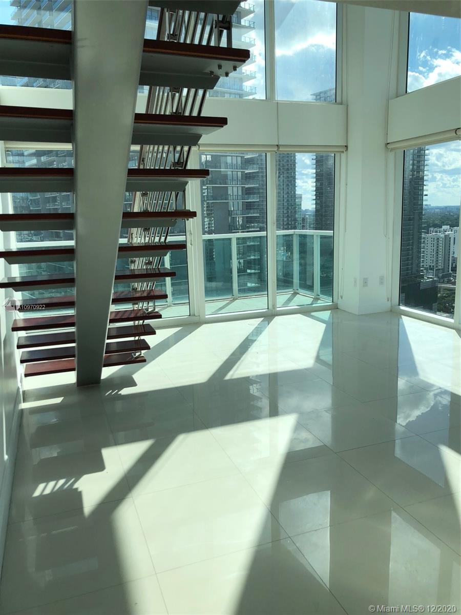 Awesome CORNER 2 Story LOFT Unit in a High Floor (equivalent to floor 32) with Wrap Around Double Height Floor to Ceiling Windows. 2 Bed/2 Bath and 2 Balconies. 24x24 White Porcelain Floor All through. Modern European Kitchen cabinets with Granite Countertop and Stainless Steel Appliances. Washer & Dryer inside the unit. BUILDING with high security, 24 hr. front desk & valet parking, and resort like amenities. GREAT LOCATION, across the street from new Brickell City Centre Mall, walking distance to fine dining, restaurants, financial and entertainment area. Direct access to public transportation(Metro Mover and Metro Rail).