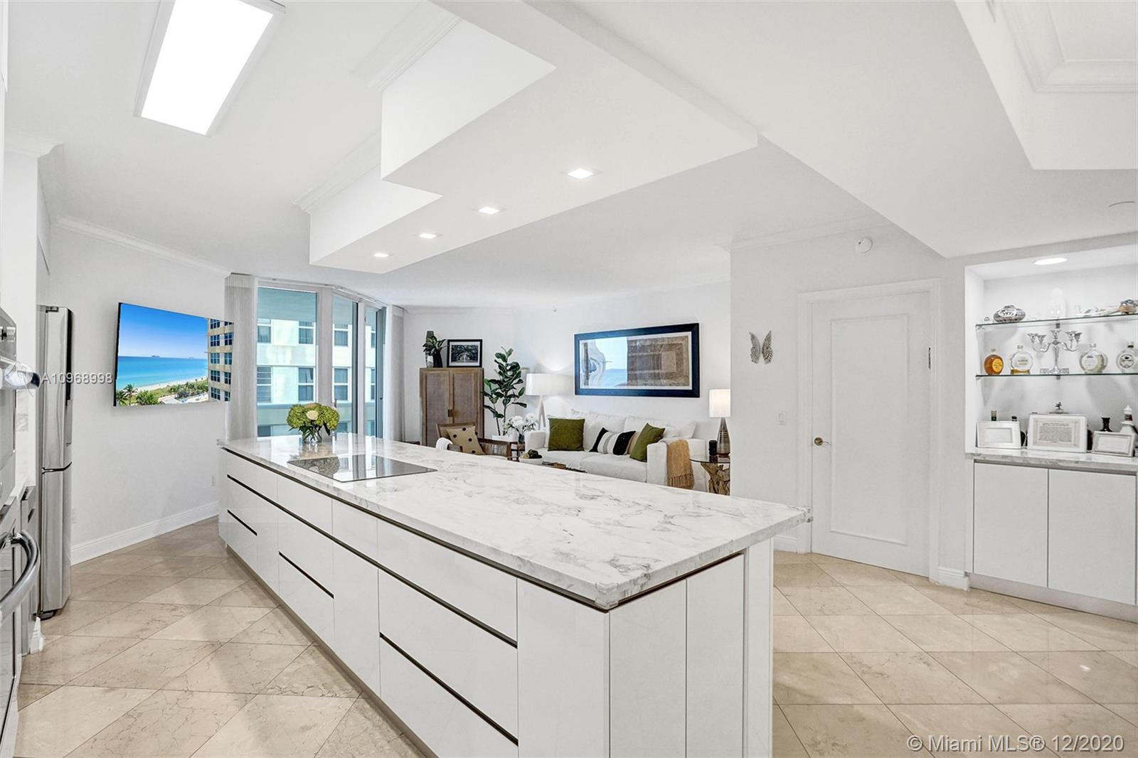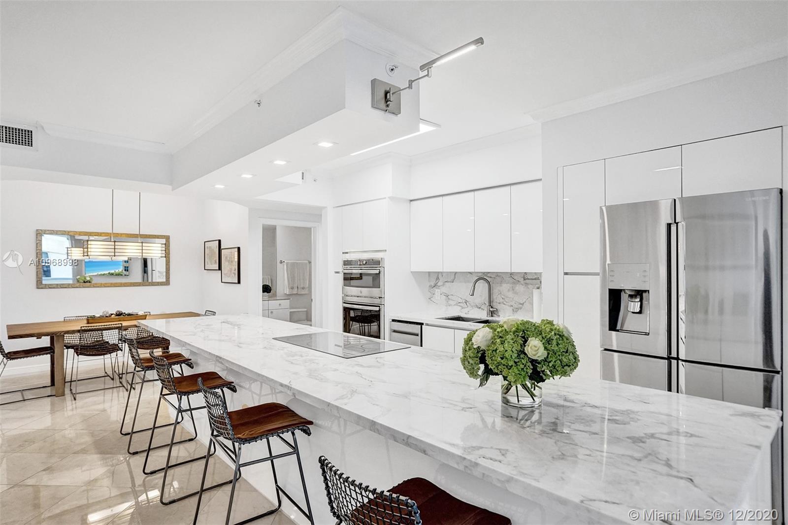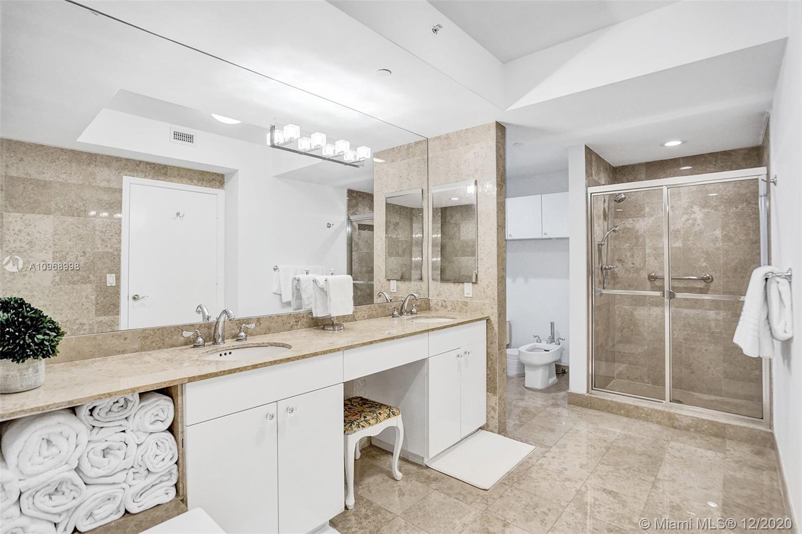 Beautiful 2BD/2BA+ den w/ocean, bay & city views featuring 1490 interior SF, marble & carpeted floors and crown molding throughout. The open kitchen features a beautiful 15’ Italian marble Island w/Monogram induction stovetop & 2 dishwashers. The primary bedroom has ocean views, walk-in closet, floor-to-ceiling windows and bath w/dual sinks. All rooms have balcony access. This unit has a new Bosch AC, new water heater, 2 storage units. The Diamonds offer unsurpassed amenities: 24hr security, valet, concierge, tennis, pool & towel service, cafe/market, room service, 16,000SF oceanside clubhouse/spa, gym, personal trainers, free exercise classes, steam rooms, saunas, indoor & outdoor hot tubs, card & party rooms, nursery, children's playroom, billiards, business center, beach attendant, more