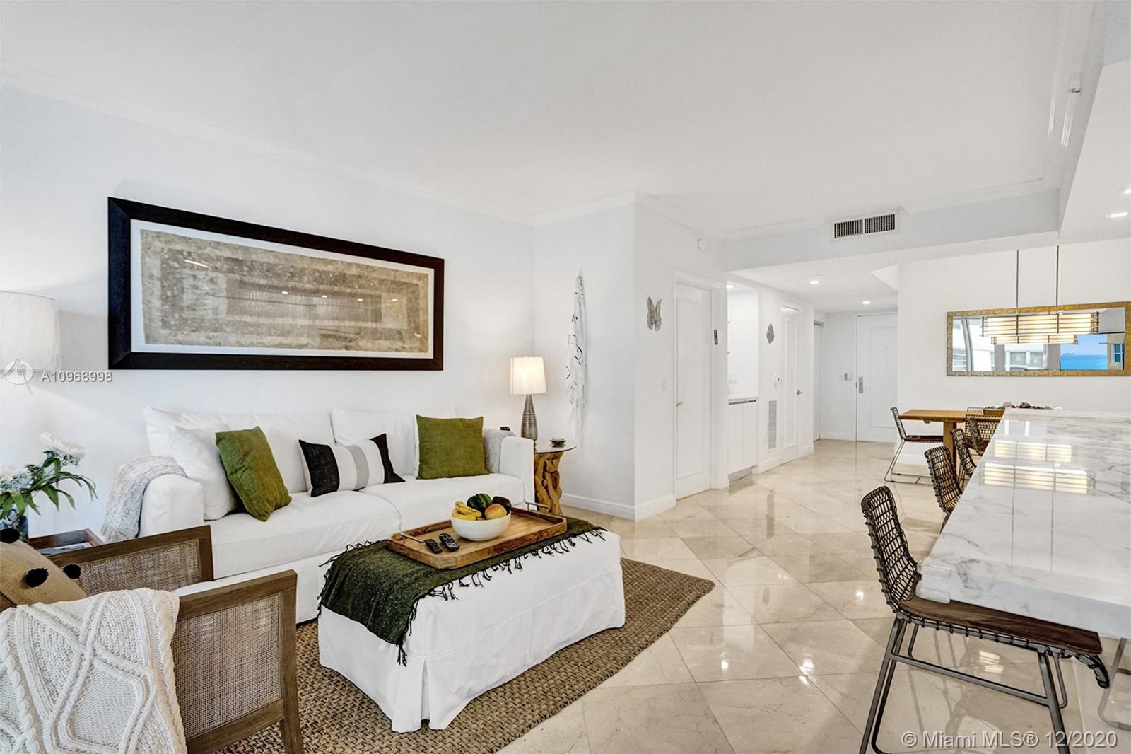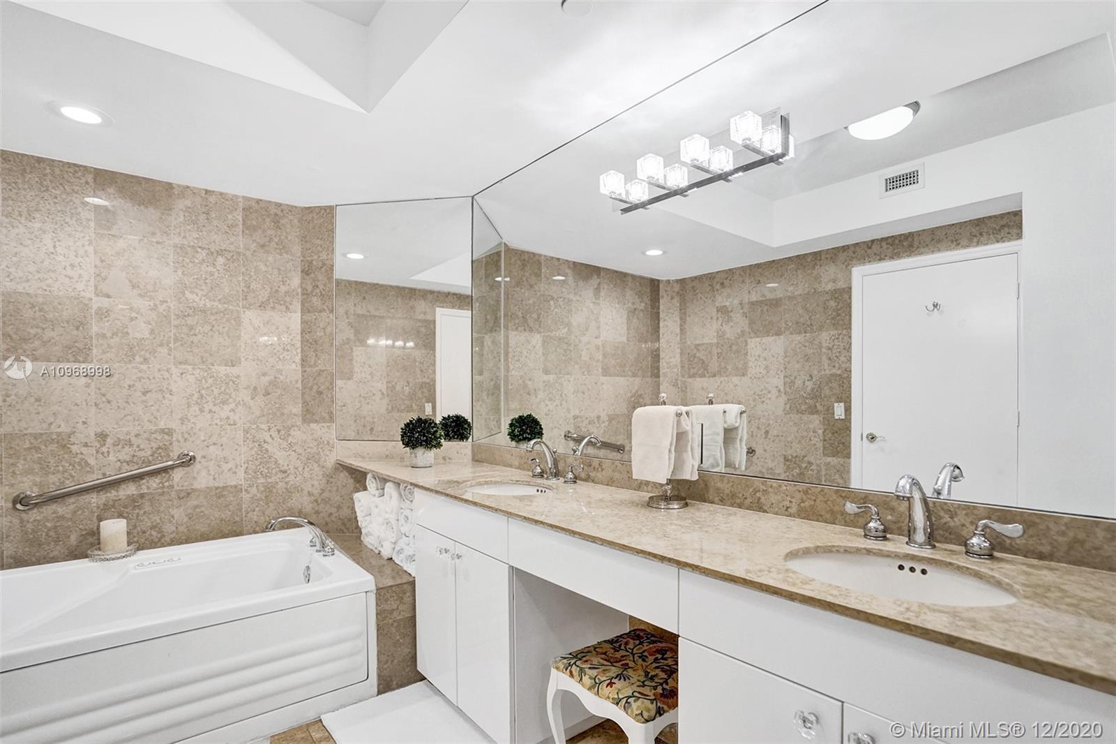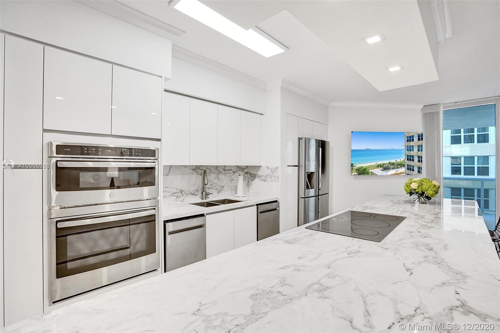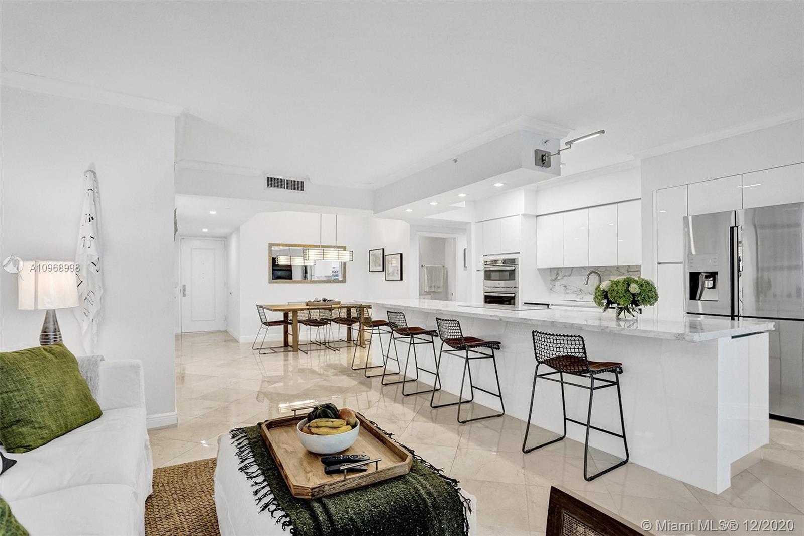 Beautiful 2BD/2BA+ den w/ocean, bay & city views featuring 1490 interior SF, marble & carpeted floors and crown molding throughout. The open kitchen features a beautiful 15’ Italian marble Island w/Monogram induction stovetop & 2 dishwashers. The primary bedroom has ocean views, walk-in closet, floor-to-ceiling windows and bath w/dual sinks. All rooms have balcony access. This unit has a new Bosch AC, new water heater, 2 storage units. The Diamonds offer unsurpassed amenities: 24hr security, valet, concierge, tennis, pool & towel service, cafe/market, room service, 16,000SF oceanside clubhouse/spa, gym, personal trainers, free exercise classes, steam rooms, saunas, indoor & outdoor hot tubs, card & party rooms, nursery, children's playroom, billiards, business center, beach attendant, more