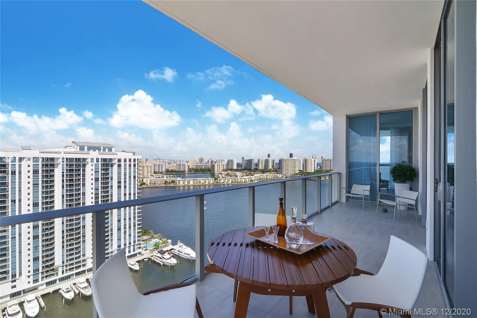 Professionally design turn key unit. Enjoy breath taking views overlooking the private full service marina , East and West view from every room on this unique 2 beds/2.5 baths plus den, 10ft high ceilings, kitchen upgrade and more Marina Palms offers 5 star amenities, complementary valet parking . Enjoy this unique water front /resort life style living only at Marina Palms. Call listing agent, agent on site at sales office.