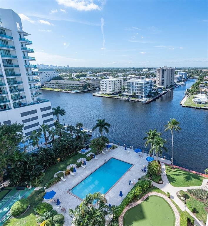 Coveted location with absolutely stunning Intracoastal, Pool & Garden views! This move in ready home features an updated kitchen and bathroom, large porcelain tile floors throughout the living spaces & ample closet space. Hurricane impact windows & door. Energy efficient & whisper quiet Central Air Conditioned system w/ dual climate controls. Beautiful tropical landscaping with resort style 30x60 heated pool located on the Intracoastal. This is a financially secure building is located in the gorgeous barrier island neighborhood of Galt Mile. Walking distance to the beach, post office, water taxi, restaurants, bank & grocery store. You will love living here! No Pets/No Rentals/No Leasing. Association states one buyer must be at least 55 years old.