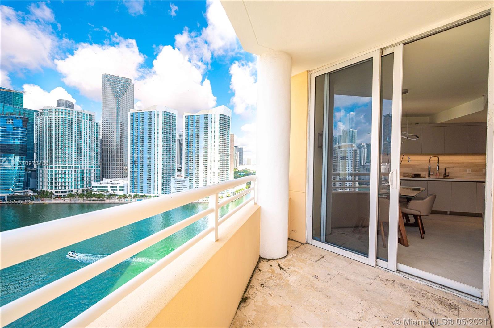 Private corner residence with Exuberant direct views of the Bay, Miami River and Miami's Skyline! With two generous sized balconies to enjoy from the privacy of your own home. A brand new kitchen with plenty of storage space, three ensuite bedrooms, custom closets, a guest bathroom, and many upgrades including two assigned parking spaces make this a perfect choice to own a property in Three Tequesta Point.