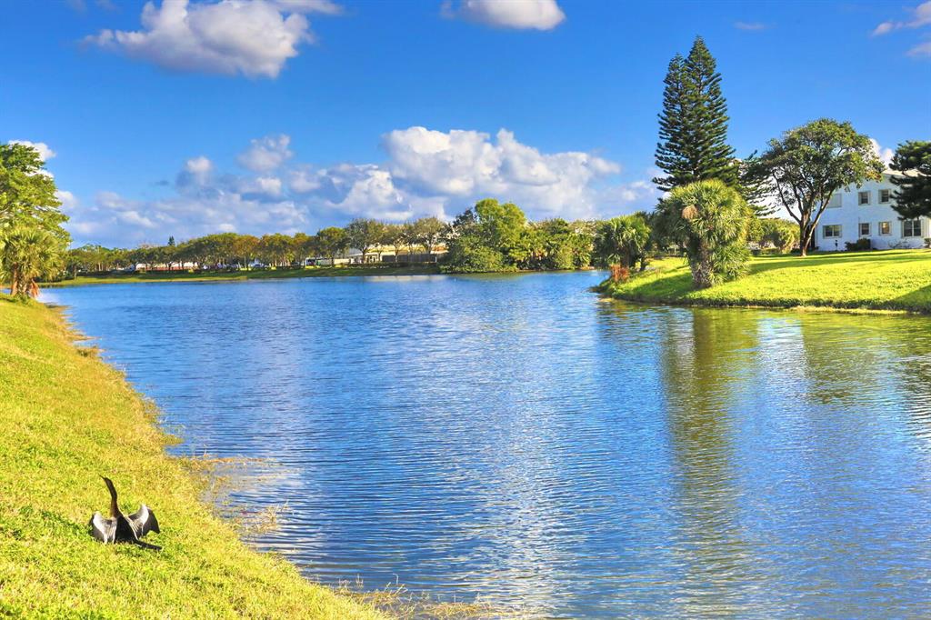 Tiled throughout, very well kept- enjoy the relaxing and tranquil wate view from bedroom balcony. Century Village is a gated managed 24 hours community, with swimming pools, saunas, gym, courtesy buses, within minutes away PBI, beaches, shopping plazas and very closed to the turnpike. Click on the photos so you can see how clean is this unit and move in ready.