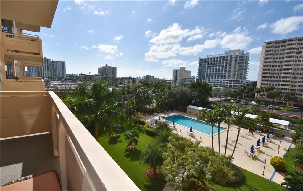 BRIGHT, SPACIOUS OVERLOOKING THE POOL..OUTSTANDING VIEWS OF CITY OF FORT LAUDERDALE AND WESTERN SUBERBS.COMPLETELY REMODELED, OPEN KITCHEN, GRANITE COUNTERTOPS, HI END STAINLESS APPLIANCES.. IMPACT WINDOWS WITH CUSTOM PLANTATION SHUTTERS THROUGHOUT. TANKLESS HOT WATER HEATER,. WOOD LAMINATE FLOORING. LARGE BRIGHT BEDROOM WILL ACCOMMODATE KING SIZE BED. HUGE WALK IN CLOSETS PLUS PLUS PLUS.. THIS UNIT IS SPOTLESS AND IS IN MOVE IN CONDITION. MONTHLY FEE: $619.00,INCLUDES: MAINTENANCE, CABLE TV, TAXES AND RESERVES.. VERY FINANCIALLY SECURE BUILDING WITH AMPLE RESERVES.. VERY CENTRAL LOCATION ONE BLOCK FROM BEACH, SHOPPING, RESTAURANTS AND EVERYTHING YOU WOULD NEED.